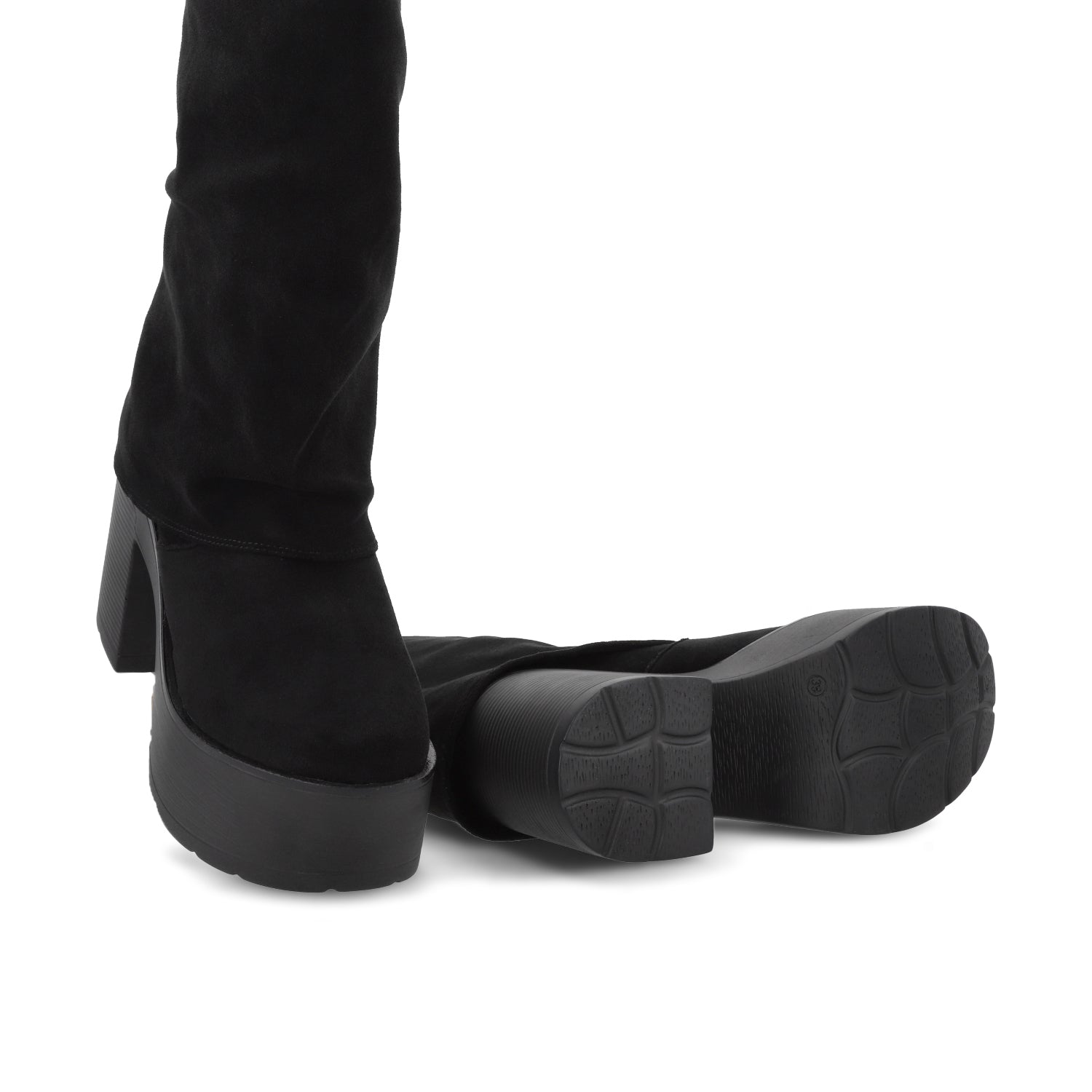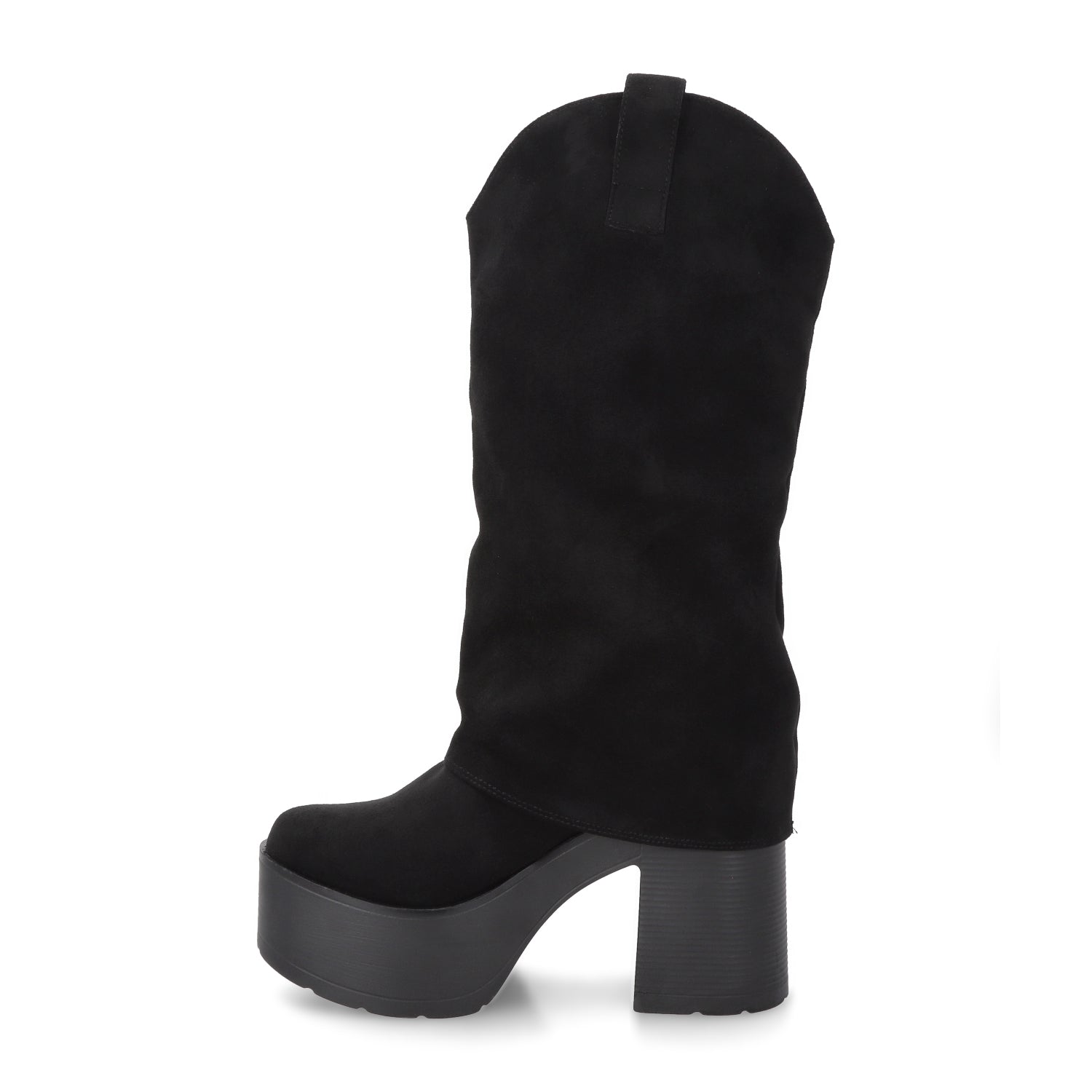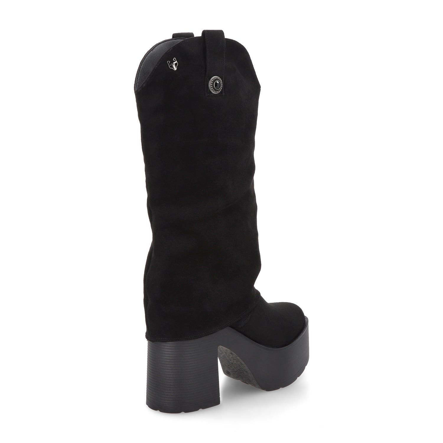 Atrévete a destacar con estas botas negras con plataforma, que combinan lo mejor del estilo trendy y urbano. Su diseño en tono negro profundo y punta redonda, junto al tacón cuadrado, las convierten en el calzado ideal para crear outfits que gritan actitud y estilo. Perfectas para quienes aman estar siempre en tendencia, aportan altura, confort y un toque chic irresistible.