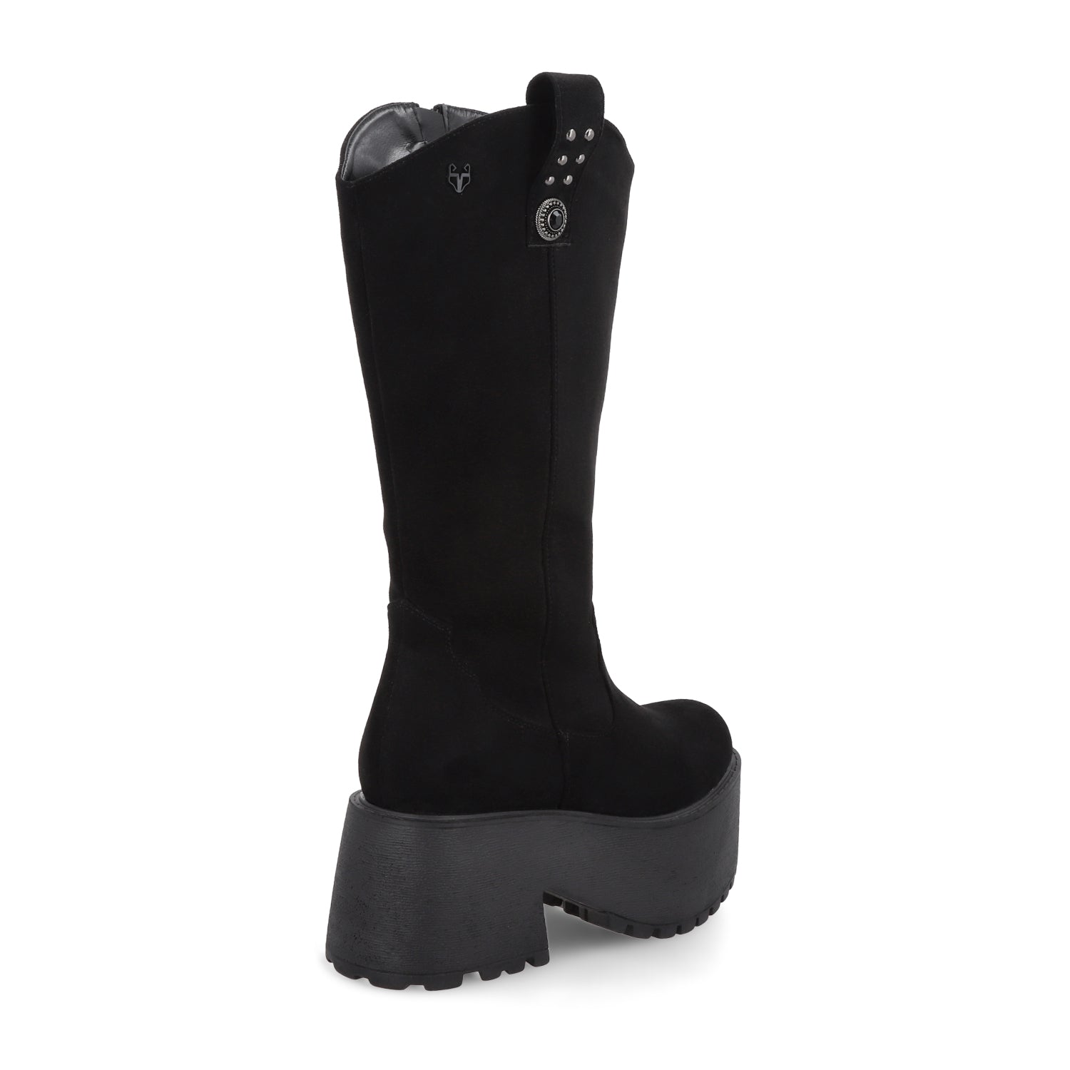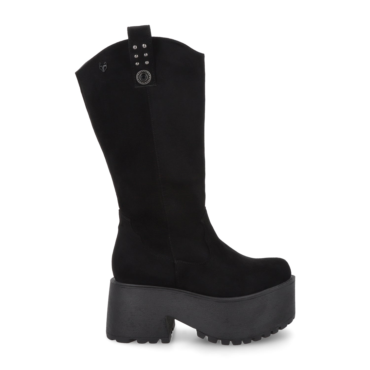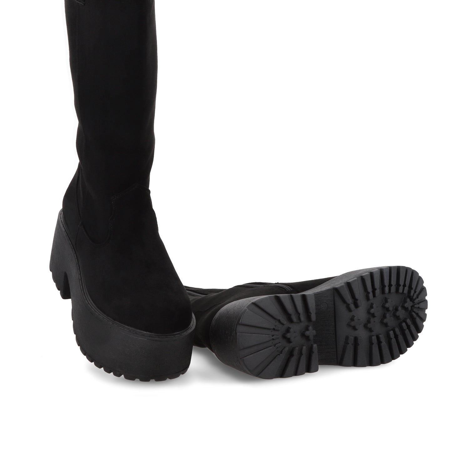Imponente y con un aire trendy y urbano, esta bota negra de apariencia gamuza con plataforma es el calzado perfecto para quienes buscan un look audaz y sofisticado. Su diseño de caña alta estiliza la pierna, mientras que la plataforma gruesa añade altura y un toque vanguardista sin sacrificar comodidad.