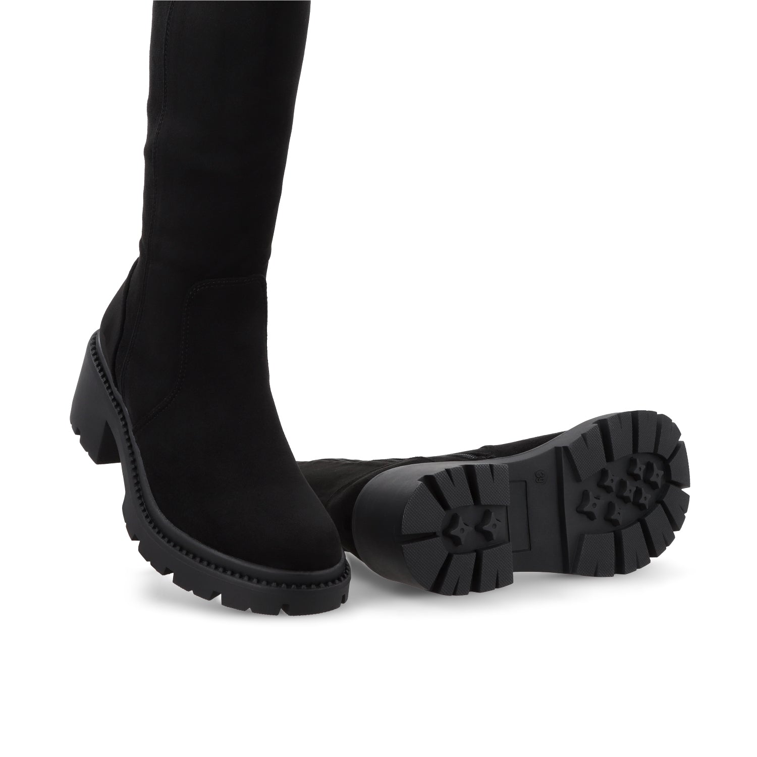 Si lo tuyo es marcar presencia, esta bota es para ti. De caña alta, con plataforma chunky y acabado en negro profundo, es el modelo ideal para elevar (literalmente) cualquier look urbano. Su diseño mezcla lo clásico con lo edgy, creando un estilo trendy y poderoso.Perfecta para usar con mini faldas, jeans o vestidos, es ese par que transforma cualquier outfit en uno digno de street style.