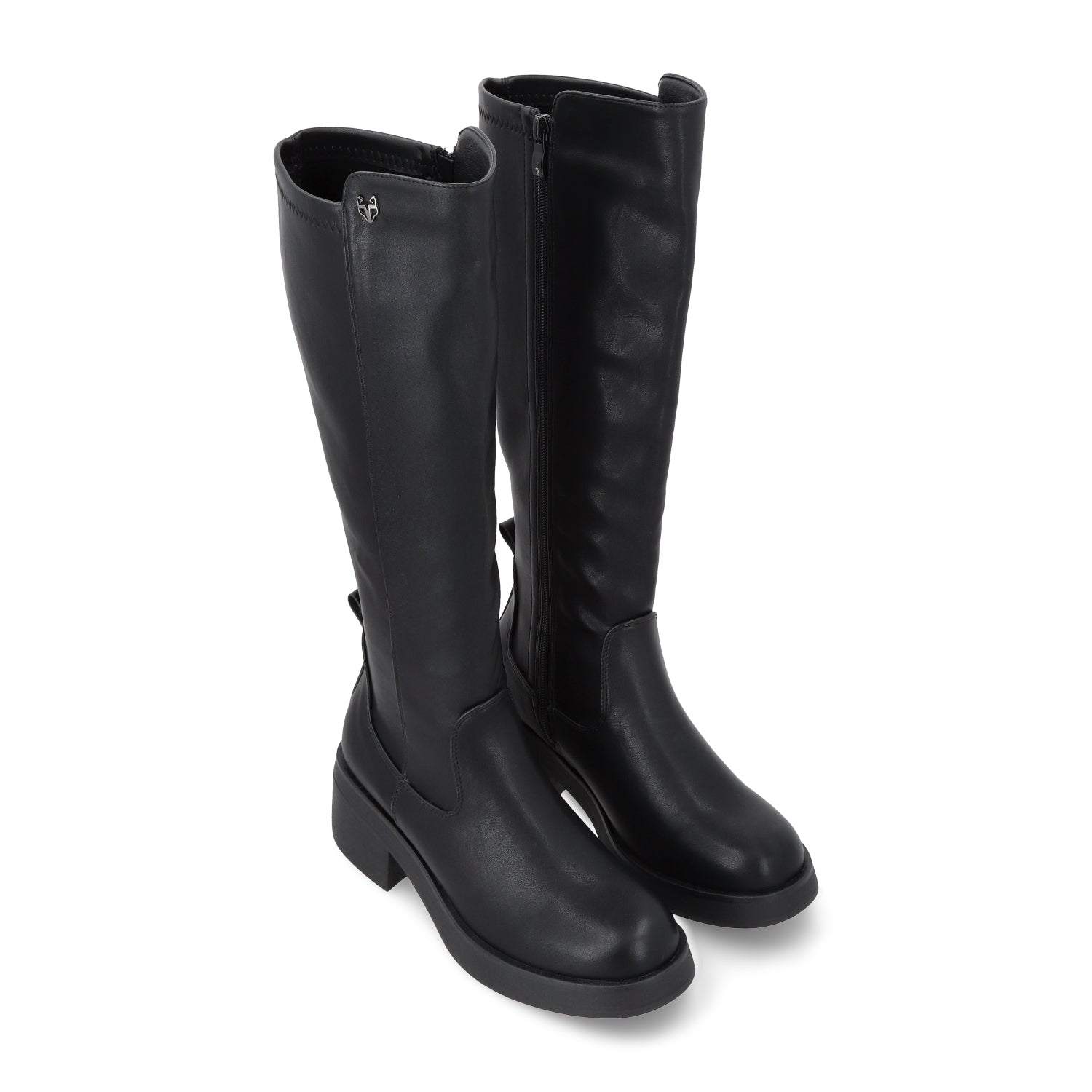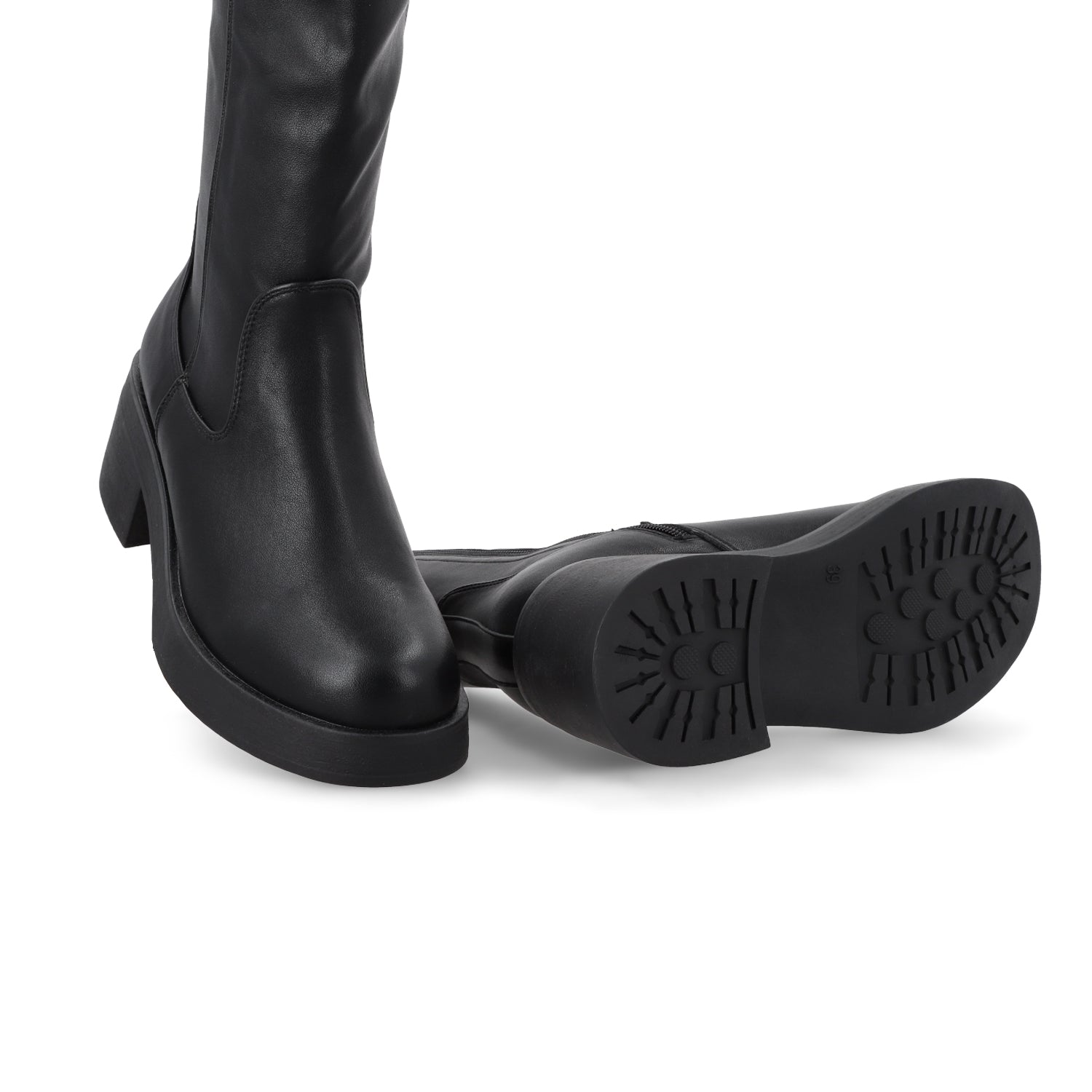 Una bota que grita actitud. Con su acabado tipo cuero, caña alta y plataforma robusta, este diseño se convierte en el complemento perfecto para elevar tus outfits diarios.Inspirada en el estilo urbano con tintes minimalistas y sofisticados, esta bota es un must para quienes aman marcar tendencia sin perder comodidad. Ideal para looks total black, jeans o vestidos oversize.