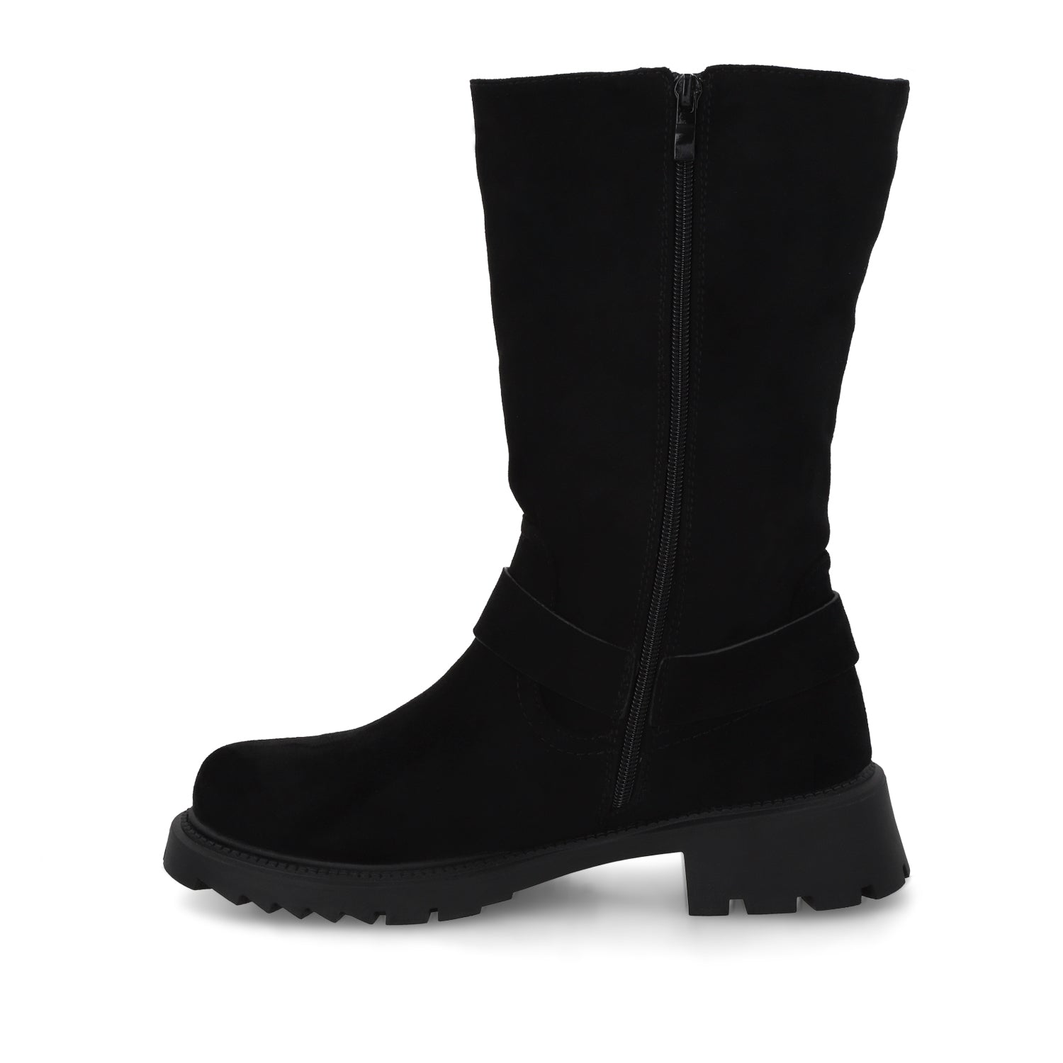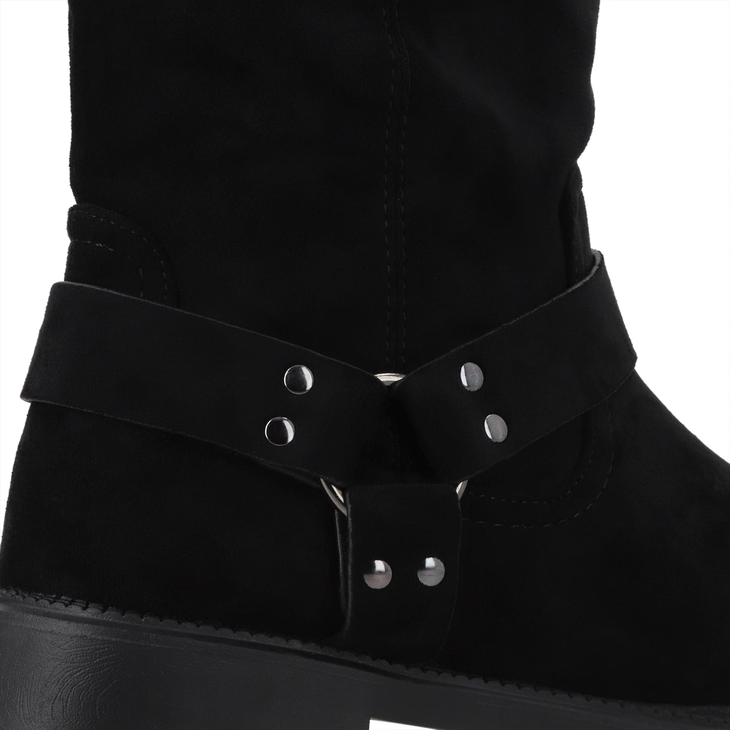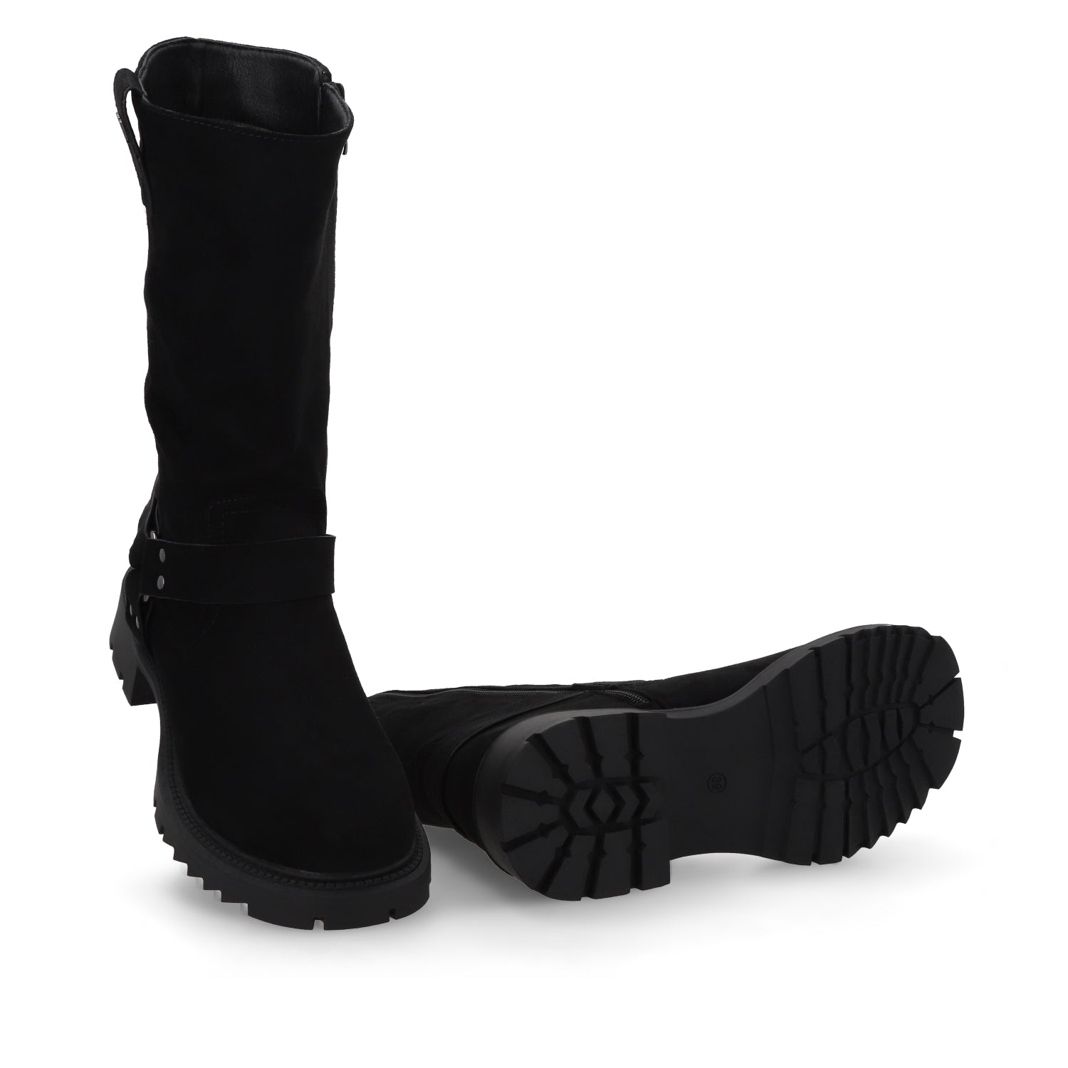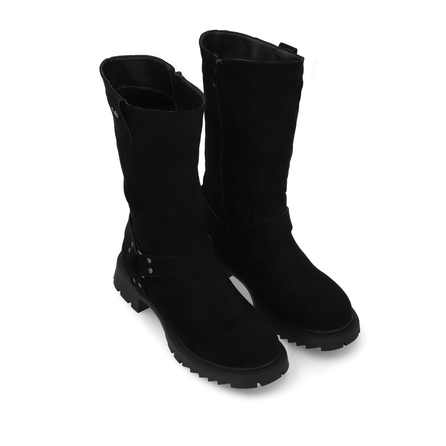 Las botas son el calzado estrella de la temporada y este modelo en apariencia de gamuza negra es el equilibrio perfecto entre tendencia y comodidad. Su diseño plano, sin taco y con punta redonda ofrece un look relajado sin perder estilo, convirtiéndolas en el complemento ideal para cualquier outfit urbano. Fáciles de combinar y ultra versátiles, estas botas son perfectas para llevar con jeans, vestidos o faldas, logrando un look effortless y moderno.