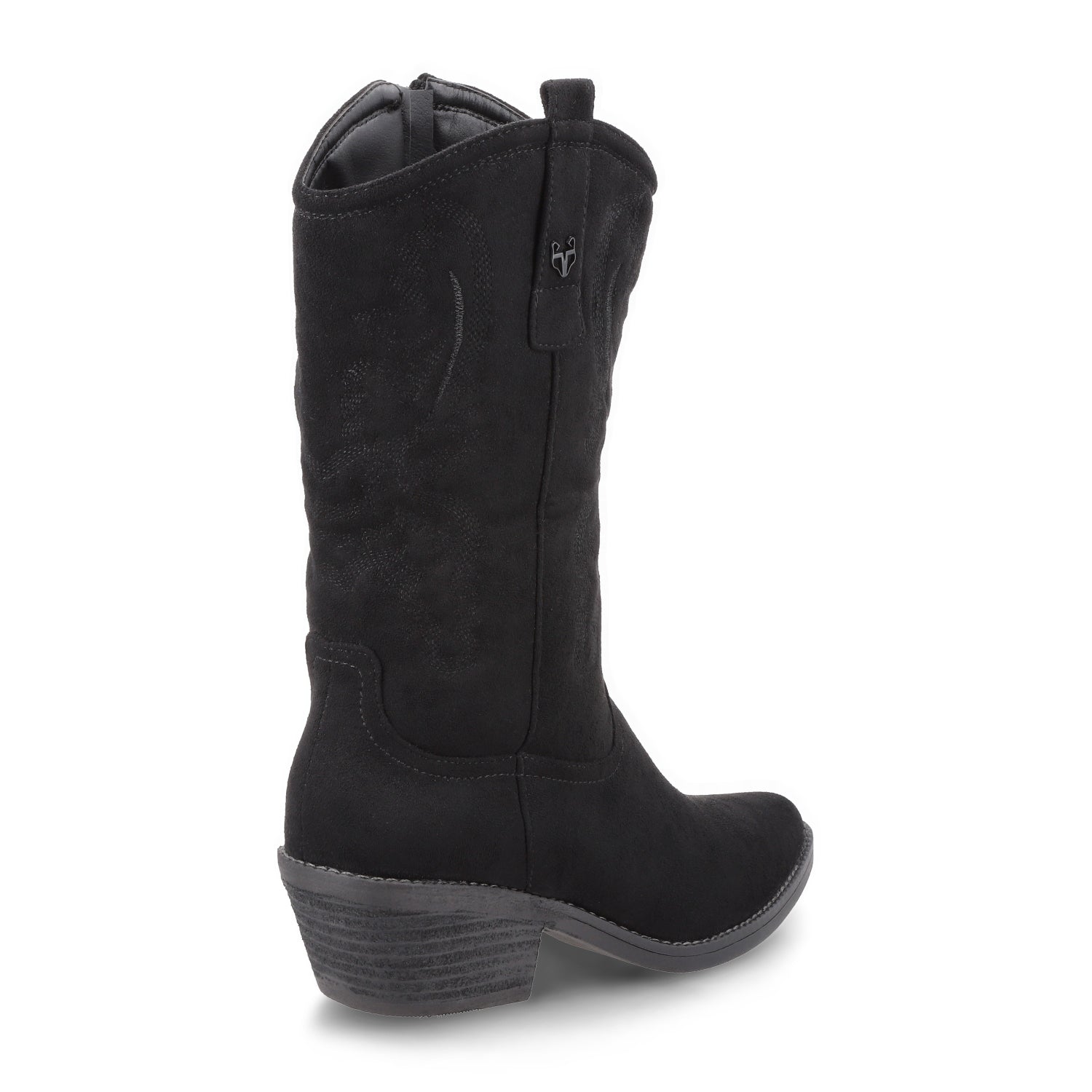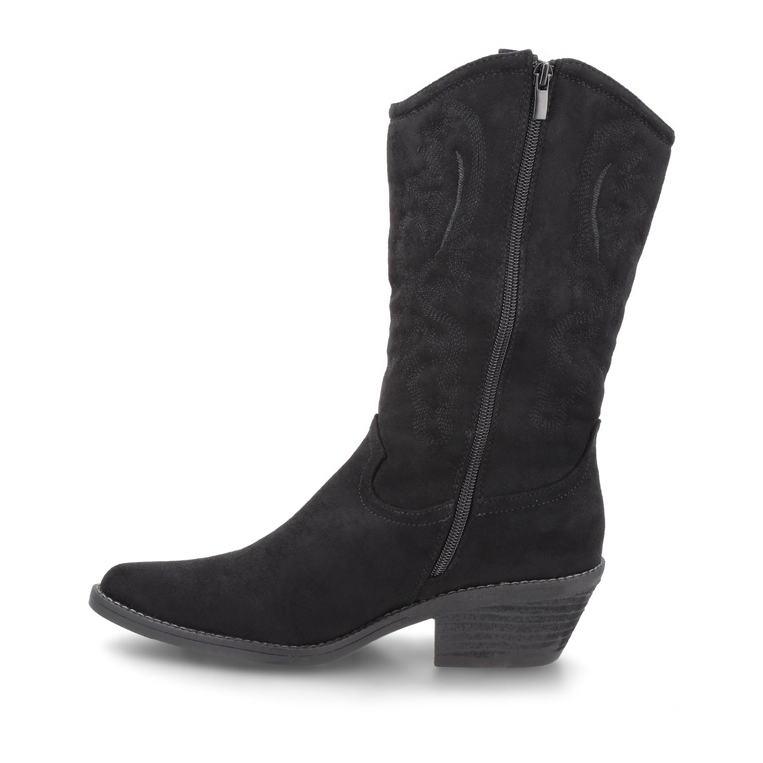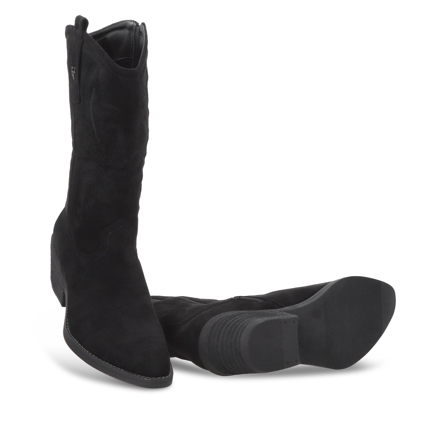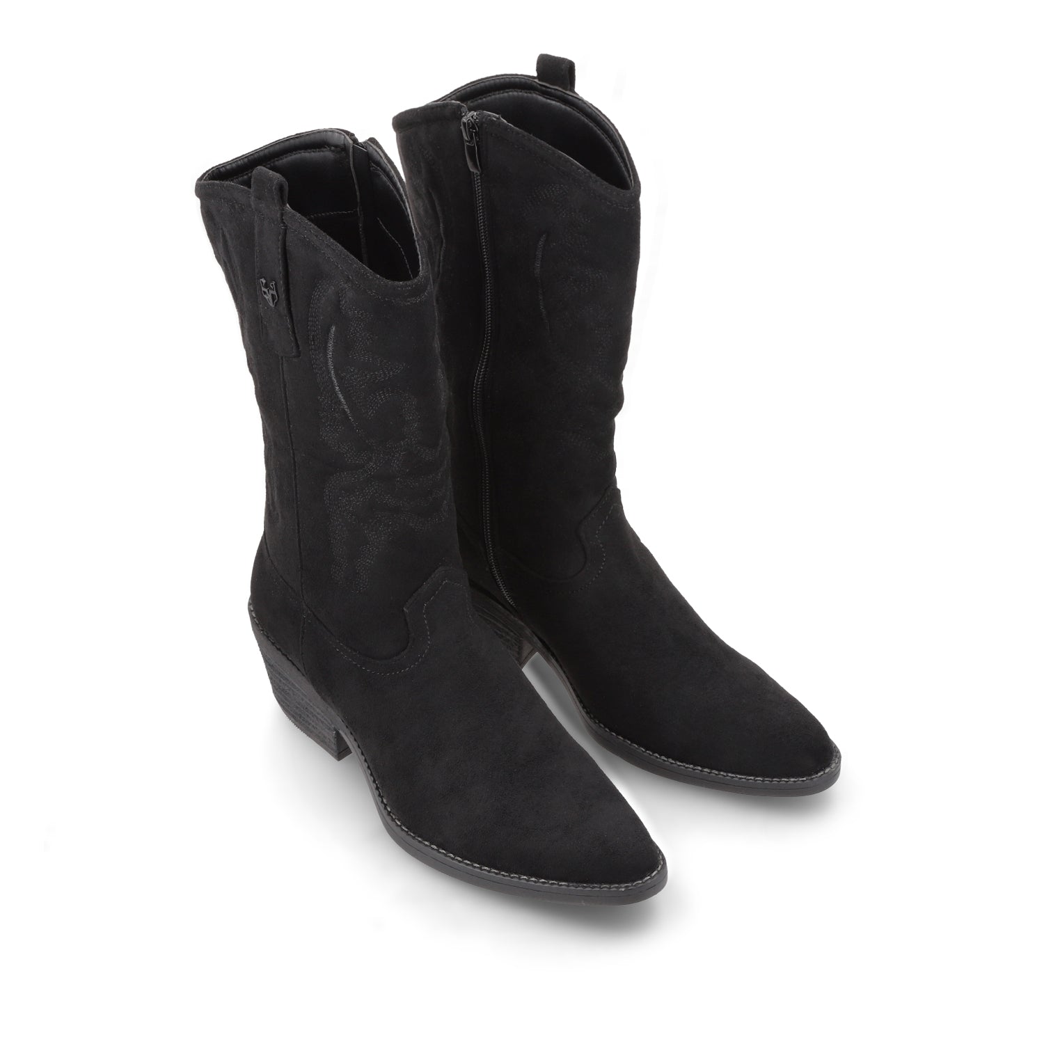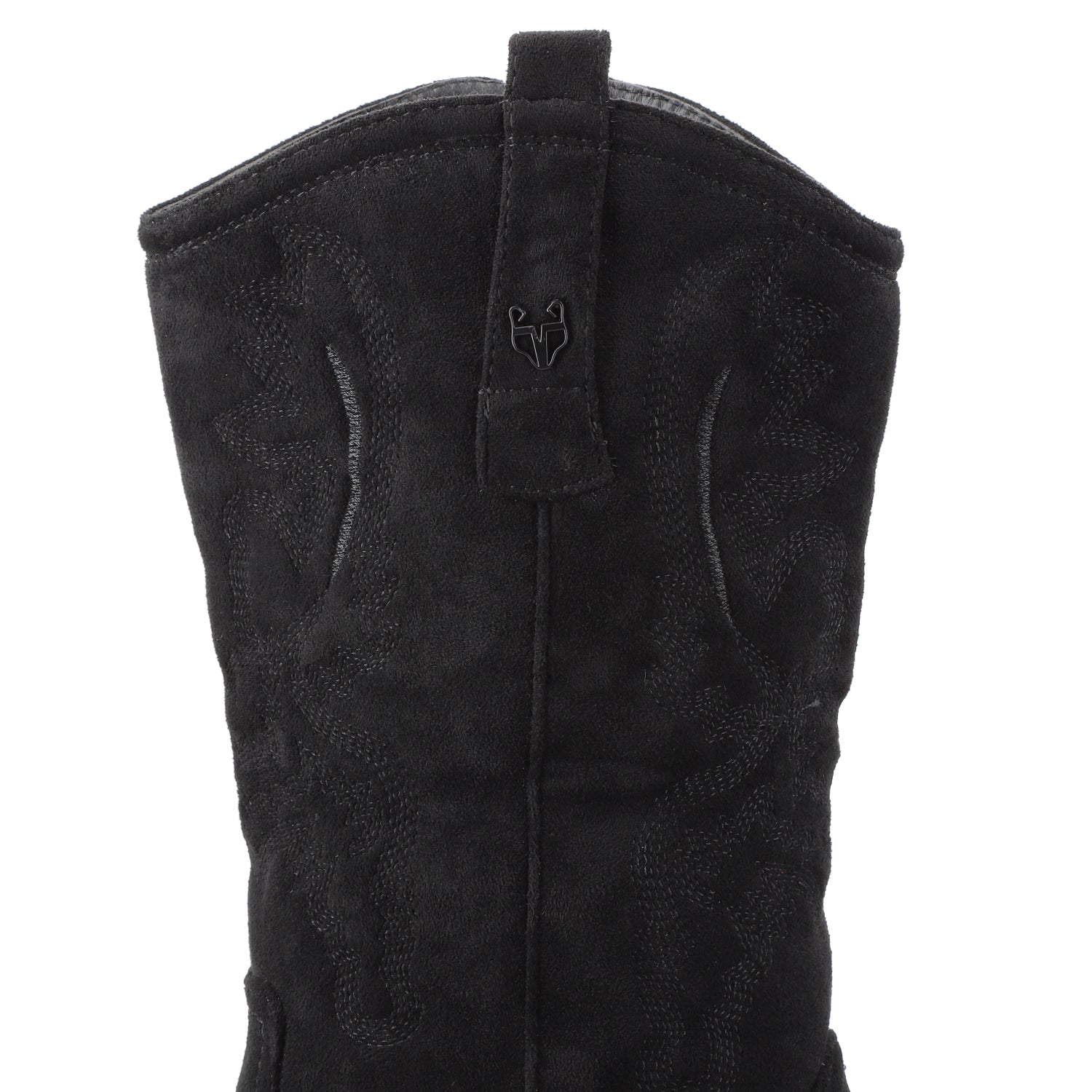 Las botas texanas son el must-have de la temporada y este diseño en gamuza lo confirma. Con su silueta clásica, punta puntiaguda y taco cónico, es el equilibrio perfecto entre estilo y versatilidad. Su color negro y acabado en gamuza aportan un aire sofisticado y relajado, ideal para combinar con jeans, vestidos o faldas y lograr un look boho-chic o urbano con actitud.