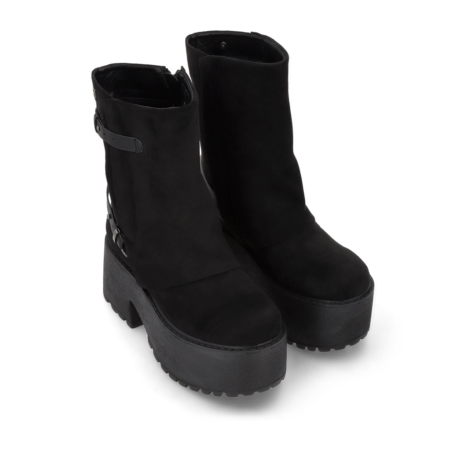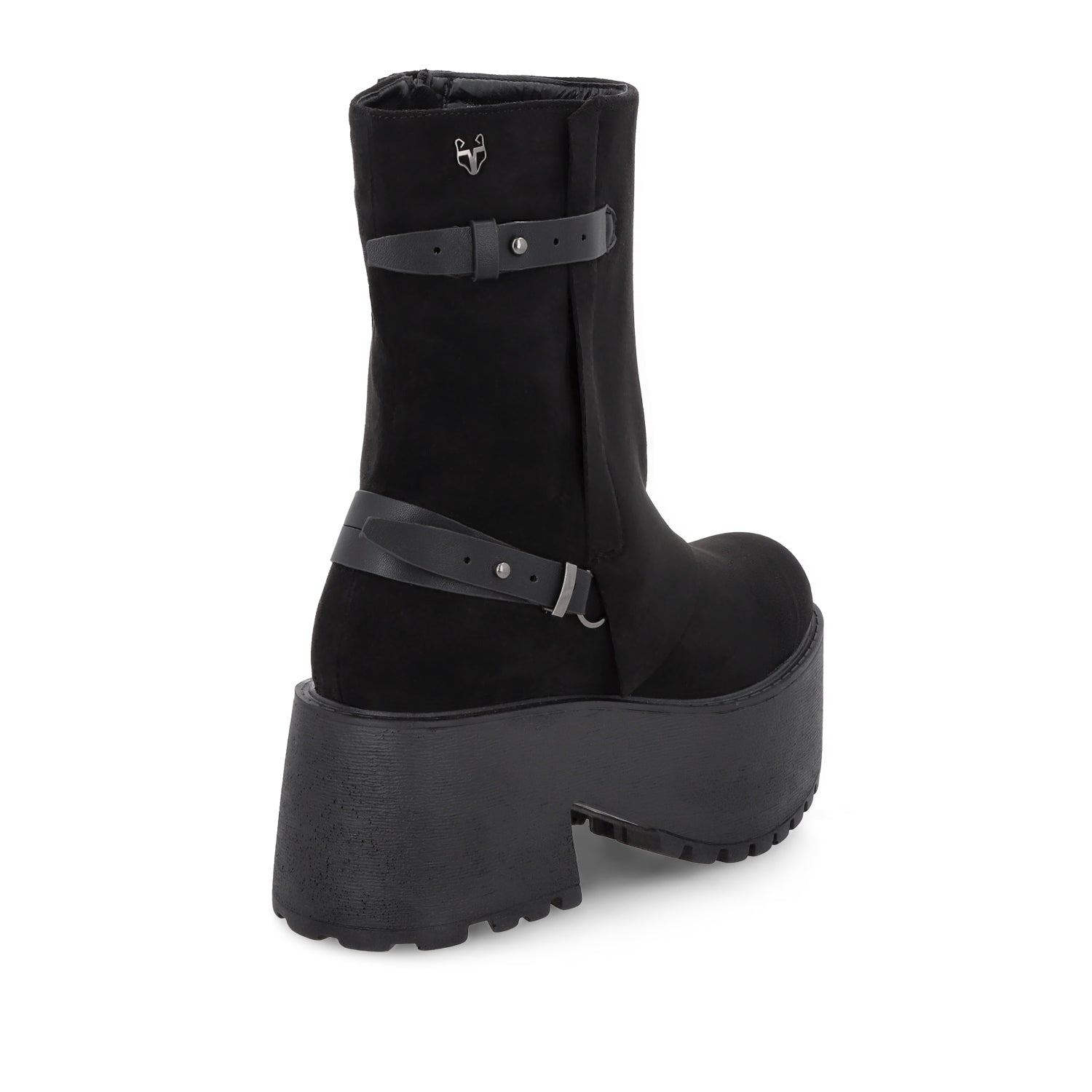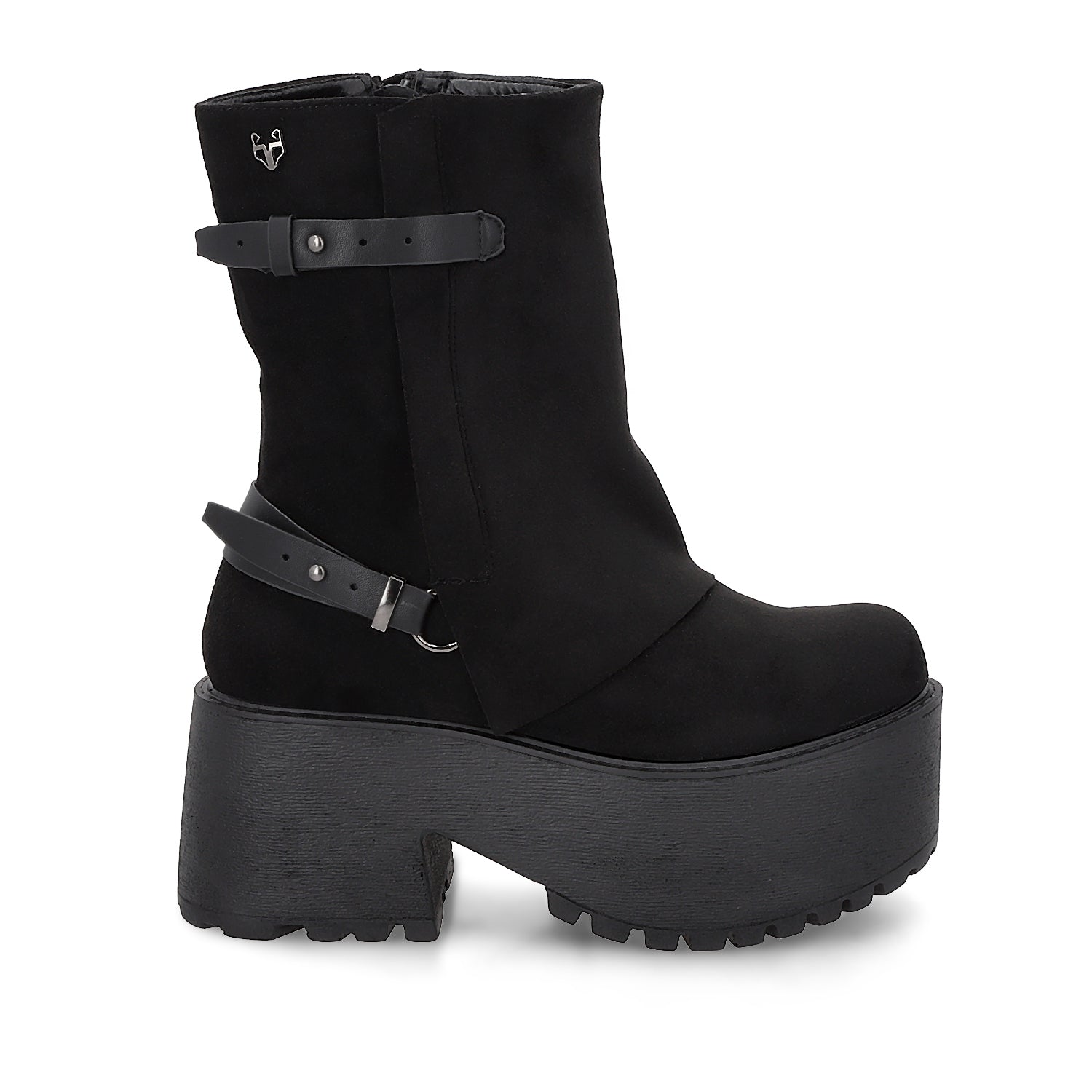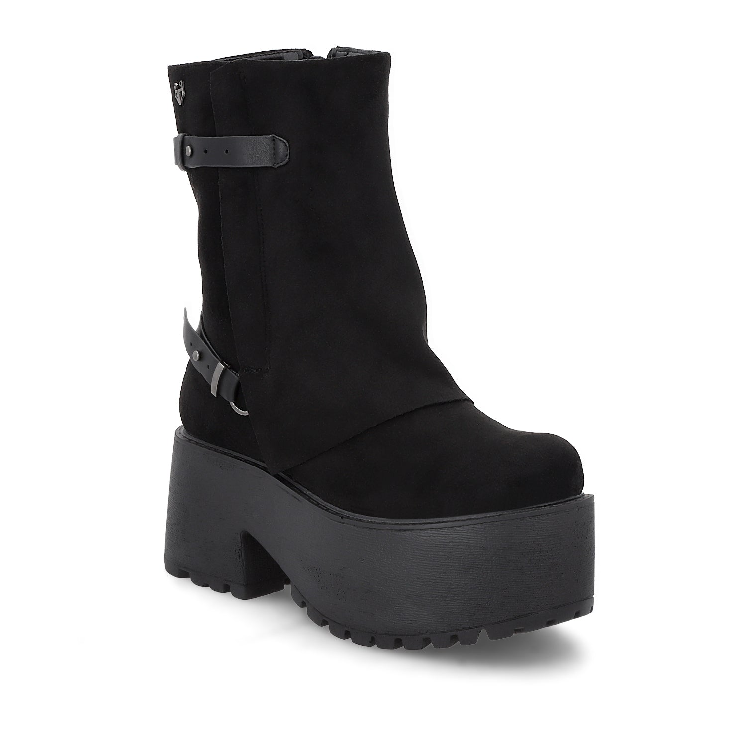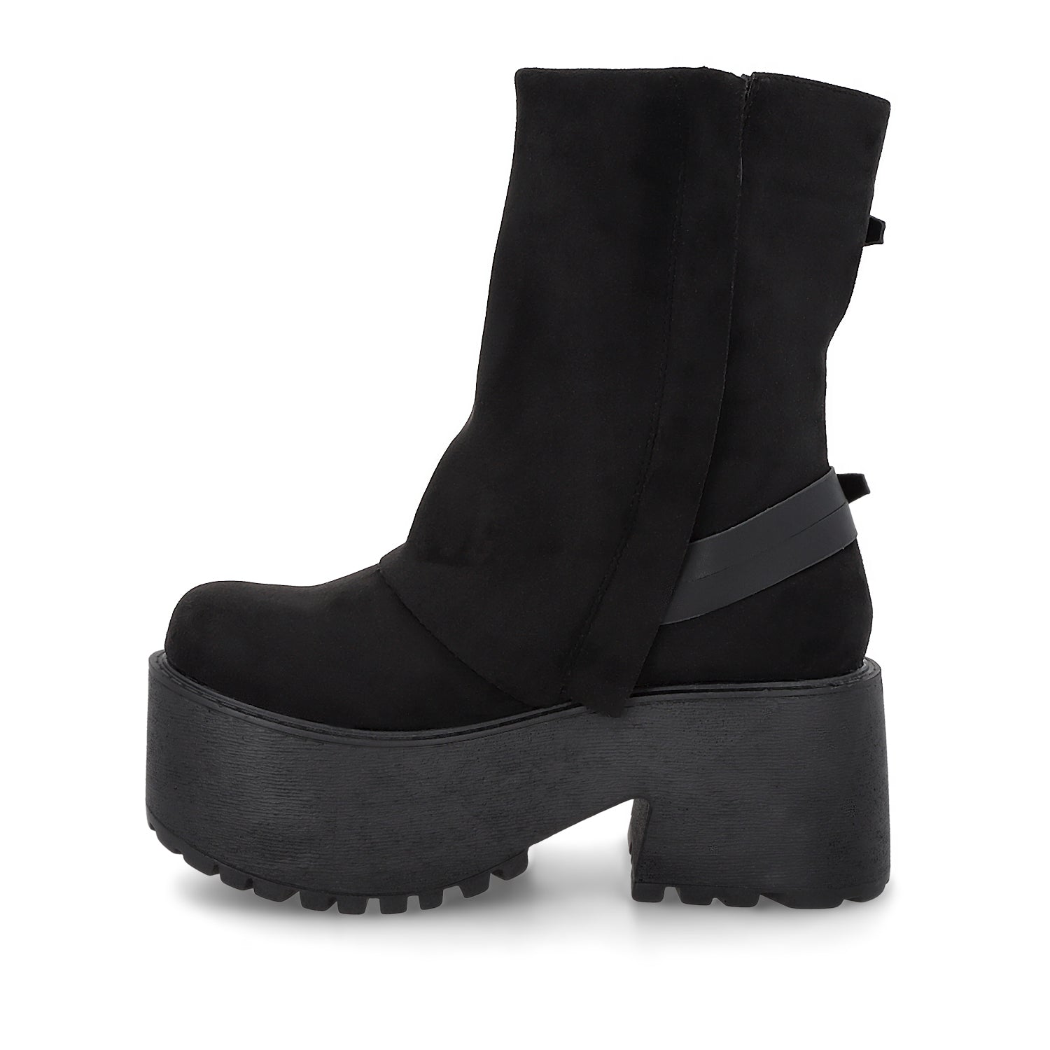 Este botín negro de apariencia gamuza es la combinación perfecta entre comodidad y tendencia, diseñado para quienes buscan un calzado con carácter y un extra de altura. Su plataforma plana proporciona mayor estabilidad y confort, permitiéndote caminar con seguridad sin sacrificar el estilo. Su diseño urbano y moderno lo convierte en un must-have para esta temporada, ideal para combinar con jeans, faldas o vestidos y crear outfits versátiles y sofisticados.