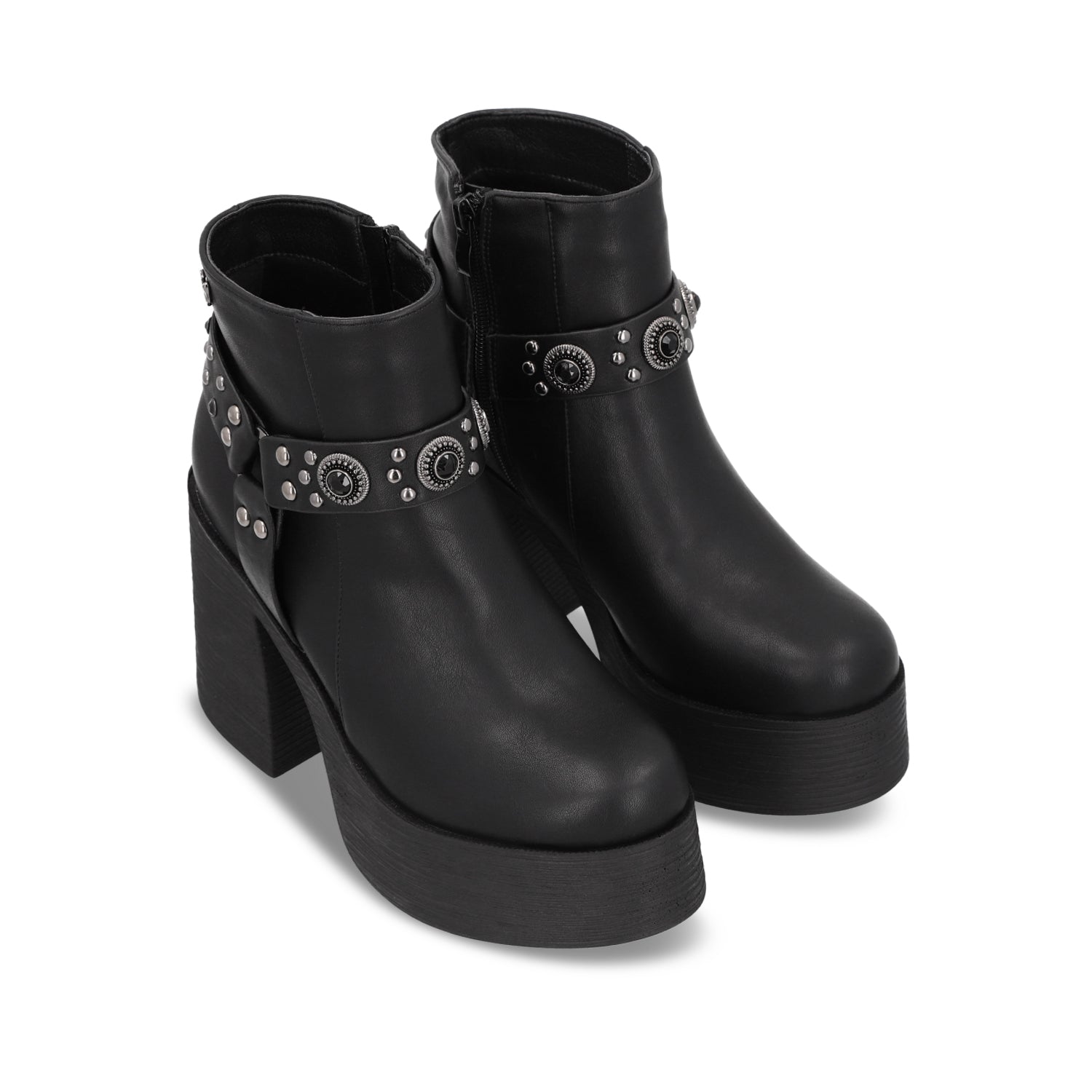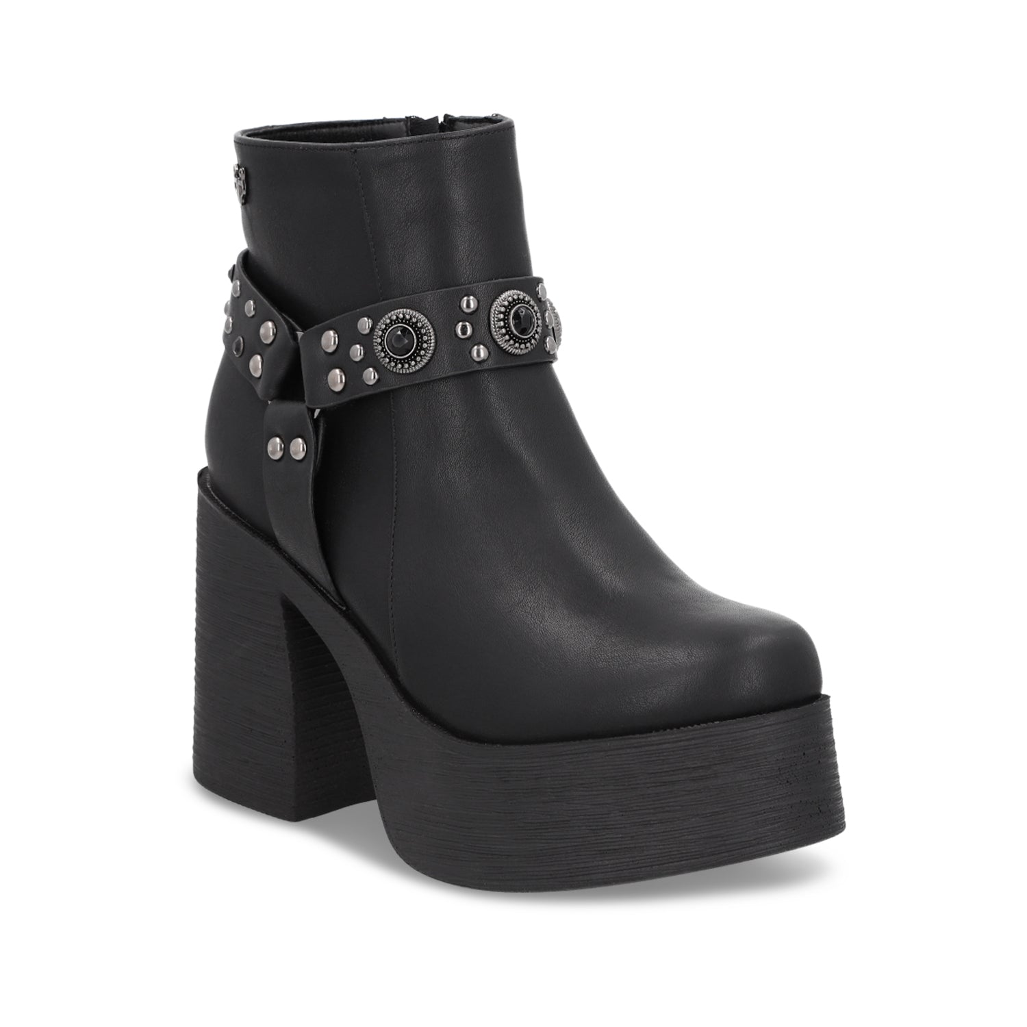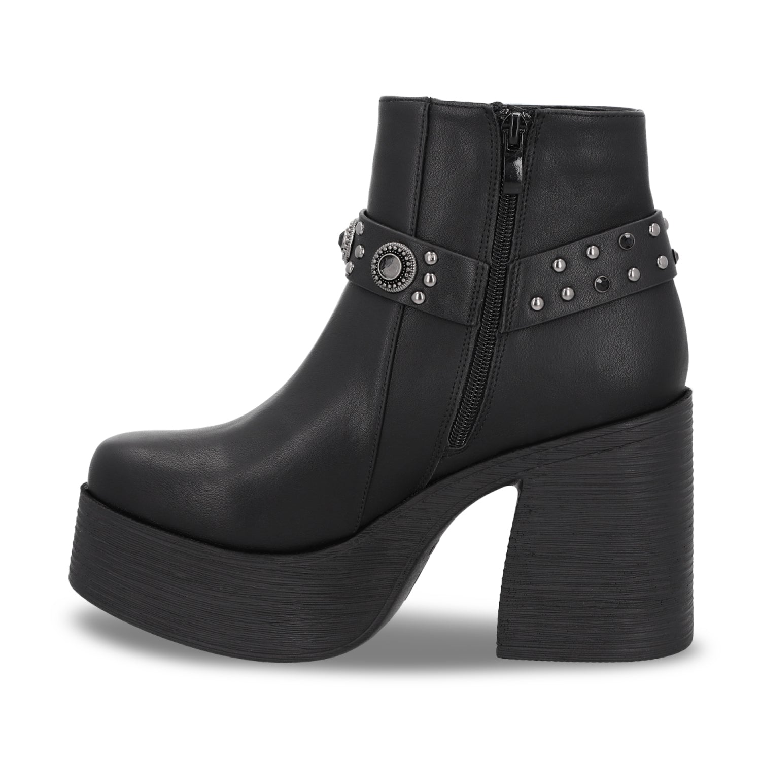 Este botín negro con plataforma y taco cuadrado es el complemento perfecto para quienes buscan estilo y comodidad en cada paso. Su diseño de punta redonda y acabado en cuero lo convierte en un must-have para elevar cualquier outfit.Ideal para looks urbanos y trendy, su plataforma brinda la altura perfecta sin sacrificar confort, haciéndolo ideal para usar todo el día.
