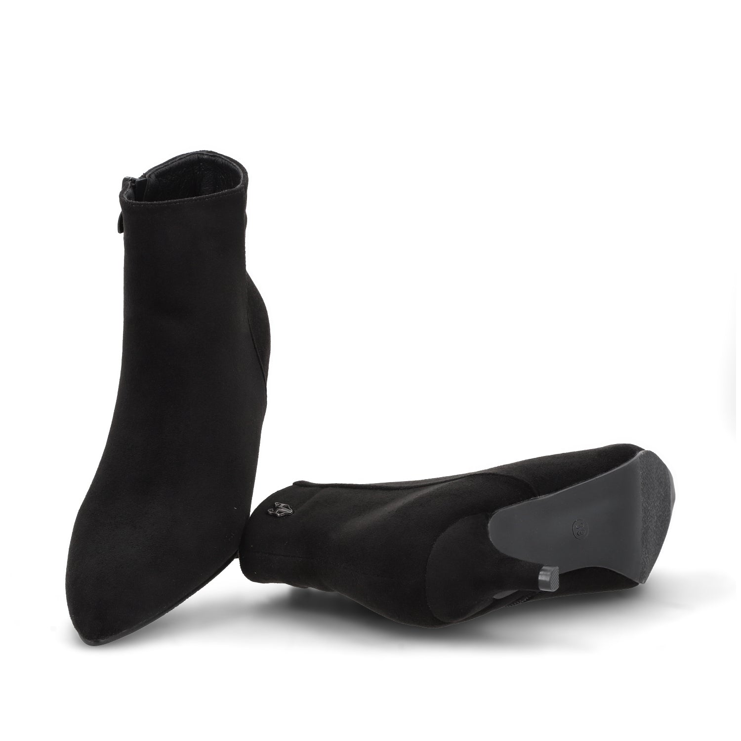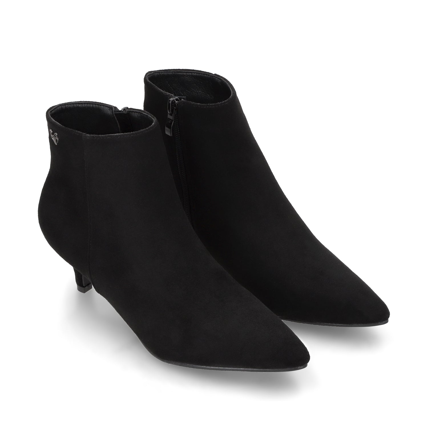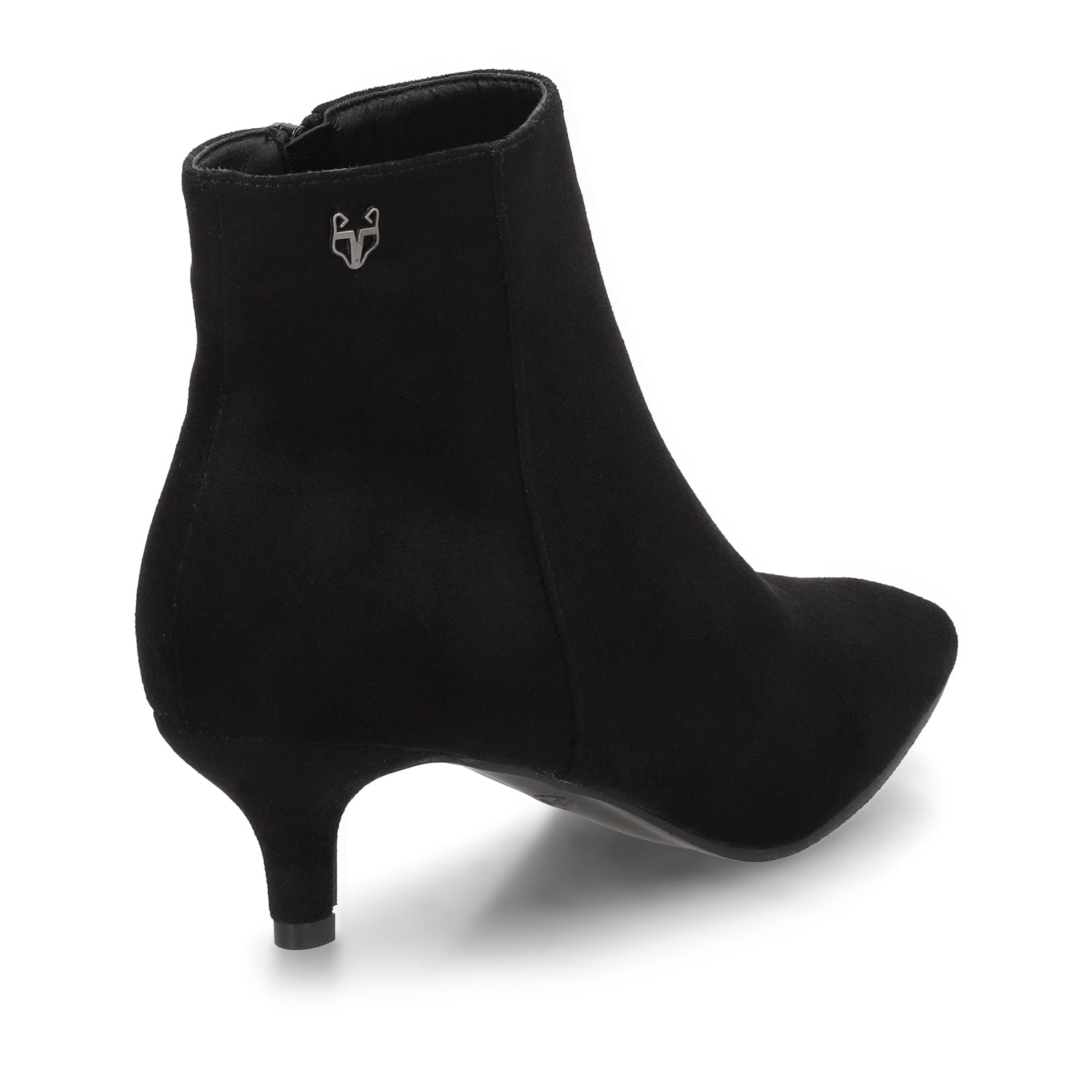 Este botín de taco aguja es el aliado ideal para llevar tu look al siguiente nivel. Con su elegante punta fina y acabado en cuero negro, logra un balance perfecto entre sofisticación y estilo urbano. El tacón tipo aguja estiliza al máximo la figura, dándole ese power vibe que transforma cualquier outfit. Ya sea con jeans, pantalones sastre o faldas midi, este par es puro.