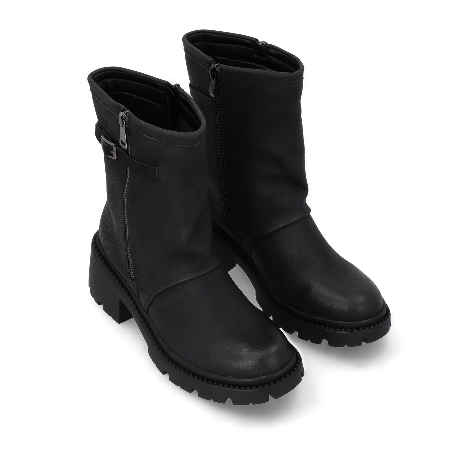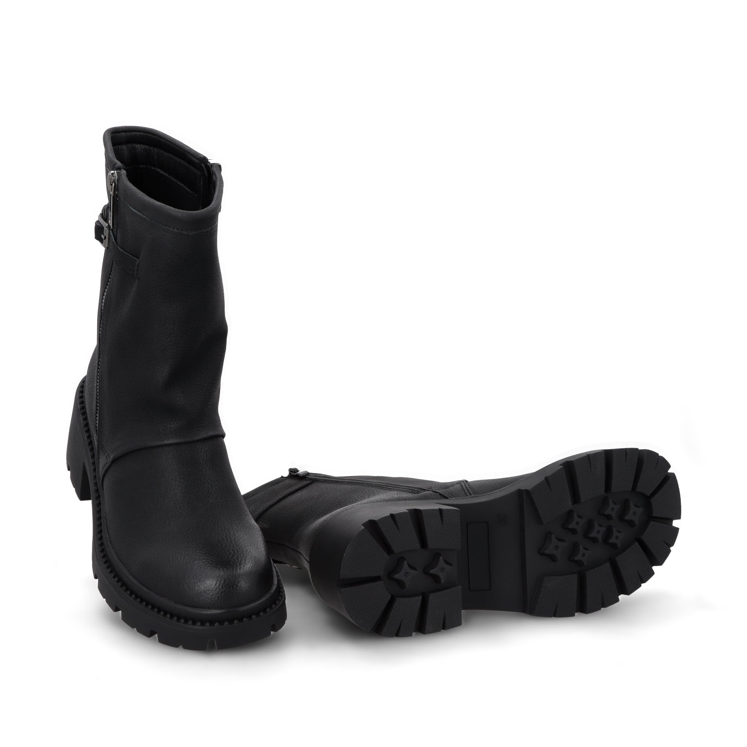 Los botines negros son un must en cualquier armario, y este modelo con apariencia de cuero es la combinación perfecta entre elegancia y versatilidad. Su diseño urbano y moderno los hace ideales para cualquier ocasión, desde un look casual con jeans hasta un outfit más sofisticado con faldas o vestido