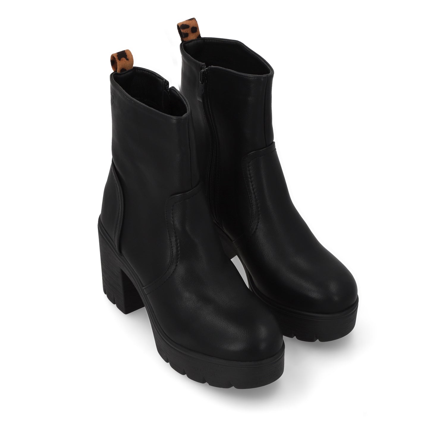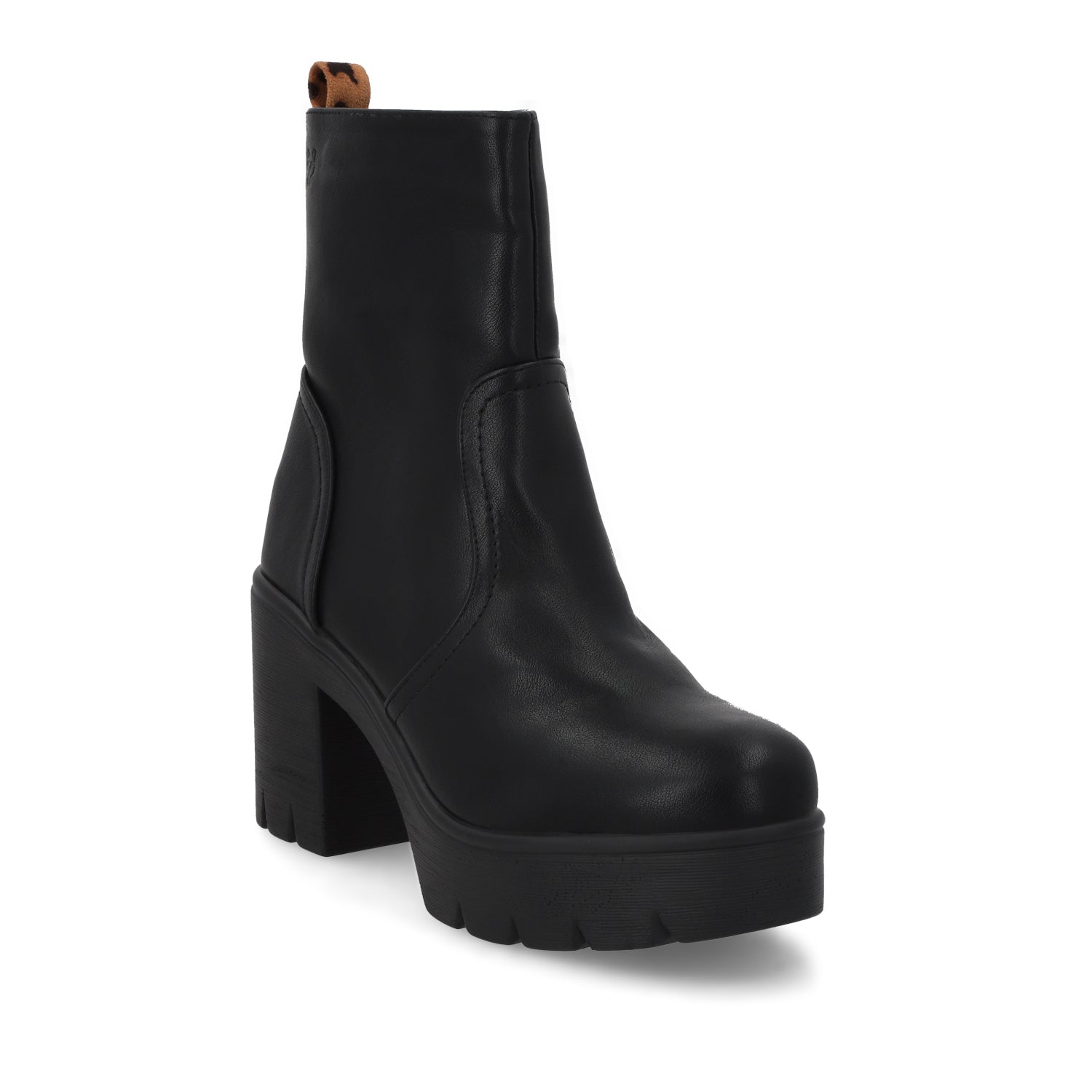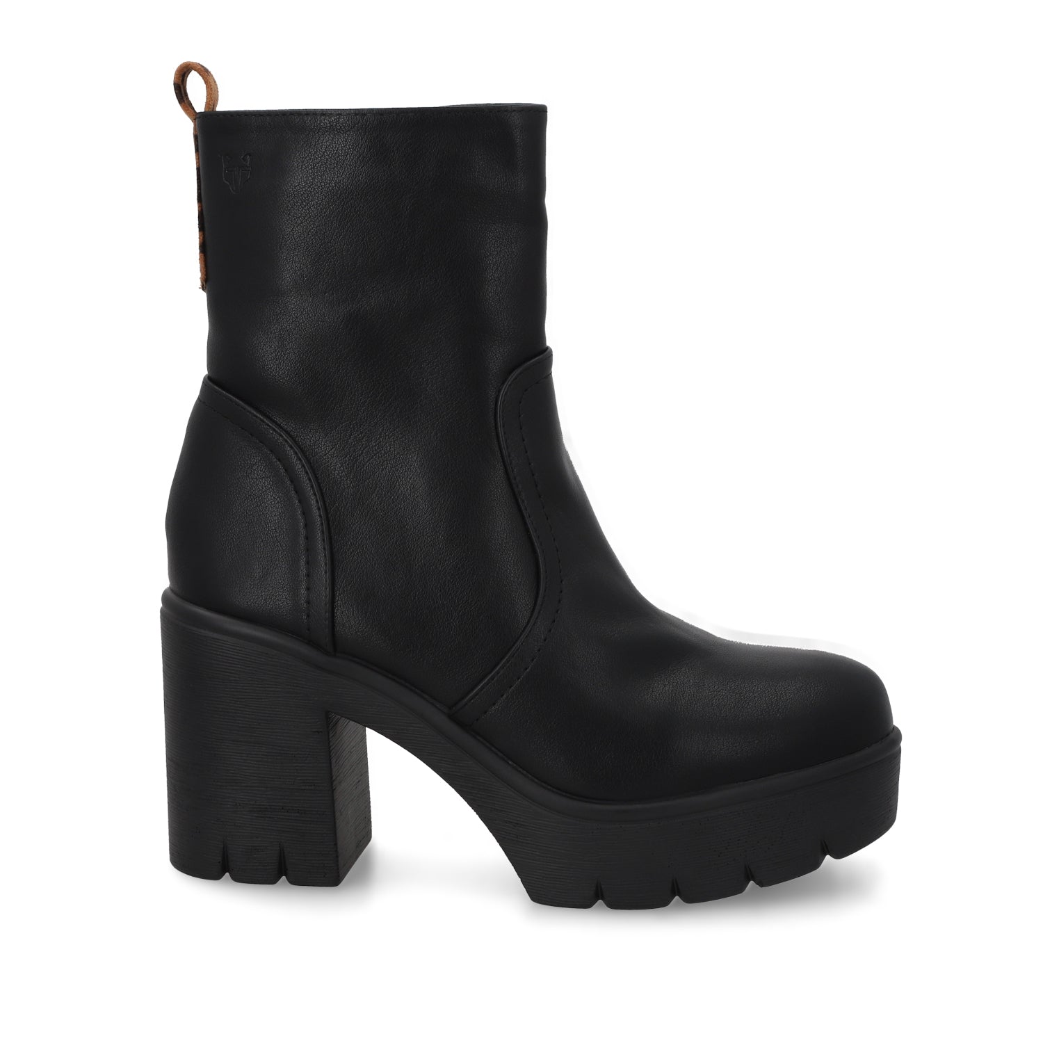 Dale un giro cool a tu look con este botín negro de plataforma y taco cuadrado. Su diseño moderno y su acabado en cuero lo convierten en un infaltable para quienes buscan altura, comodidad y versatilidad en un solo calzado.Con su punta redonda y plataforma imponente, este botín es perfecto para looks urbanos con un toque sofisticado.