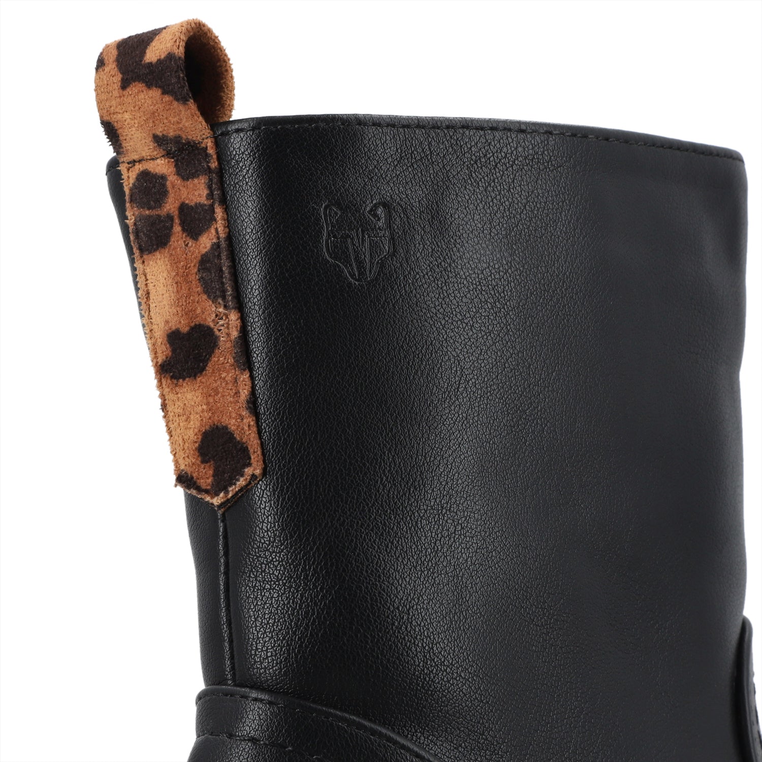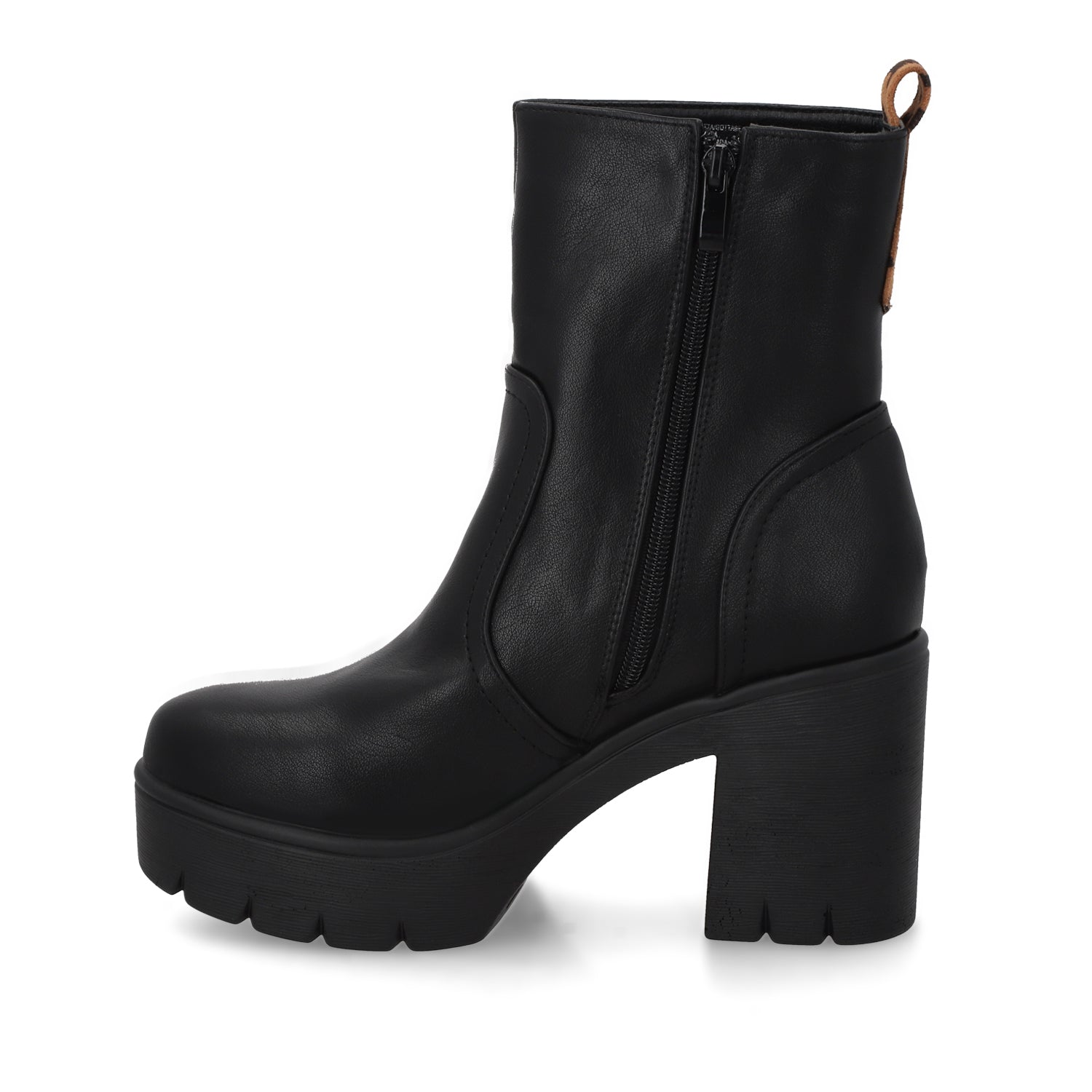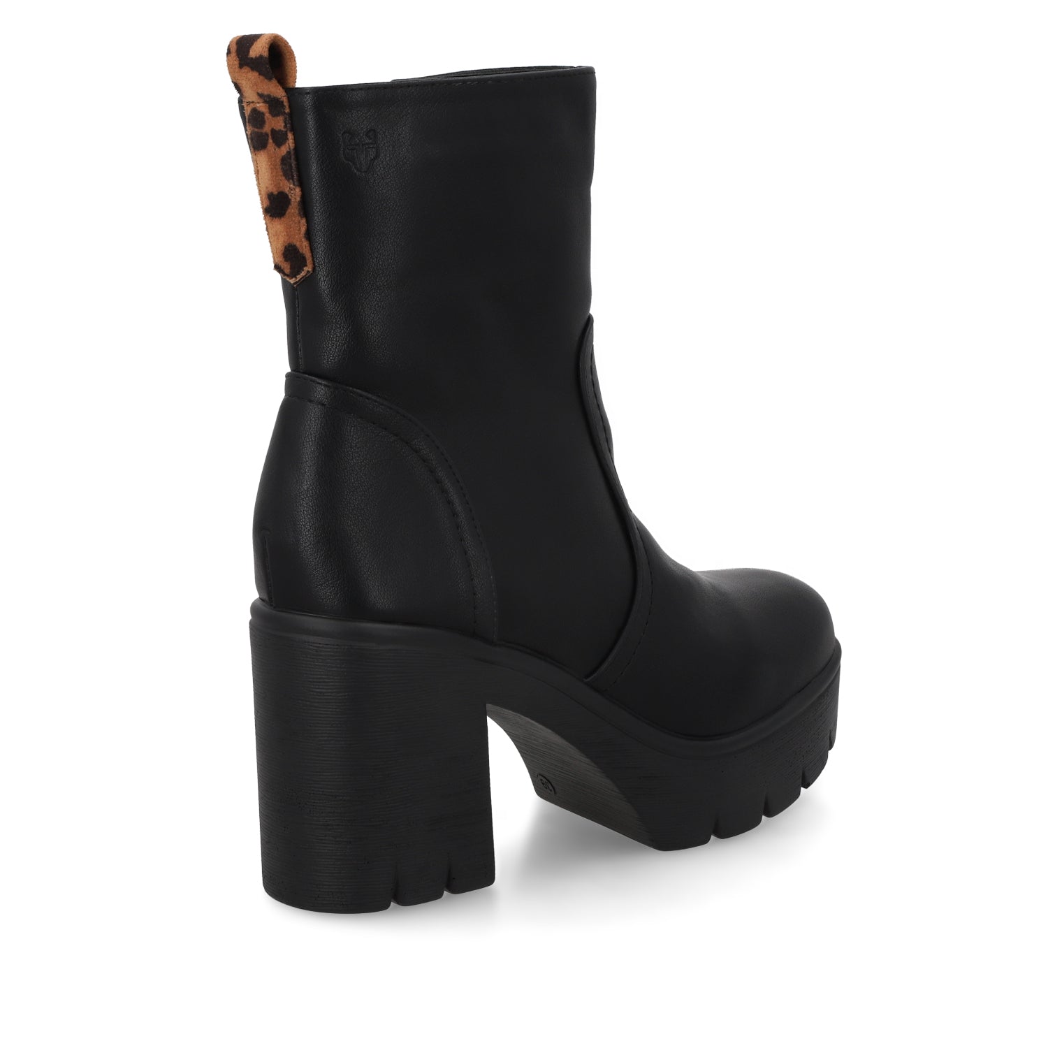 Dale un giro cool a tu look con este botín negro de plataforma y taco cuadrado. Su diseño moderno y su acabado en cuero lo convierten en un infaltable para quienes buscan altura, comodidad y versatilidad en un solo calzado.Con su punta redonda y plataforma imponente, este botín es perfecto para looks urbanos con un toque sofisticado.