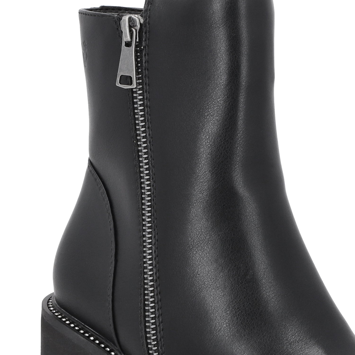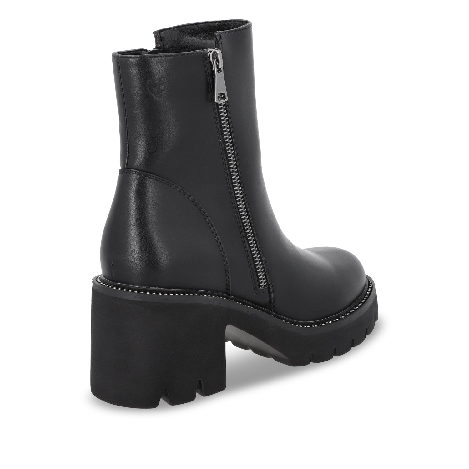 Este botín negro con plataforma es la combinación perfecta entre elegancia, comodidad y actitud urbana, ideal para quienes buscan un calzado versátil que se adapte a cualquier ocasión. Su tacón cuadrado brinda estabilidad y confort, mientras que la punta redonda aporta un toque sofisticado sin perder su esencia moderna.Su diseño minimalista en acabado negro lo convierte en un básico imprescindible