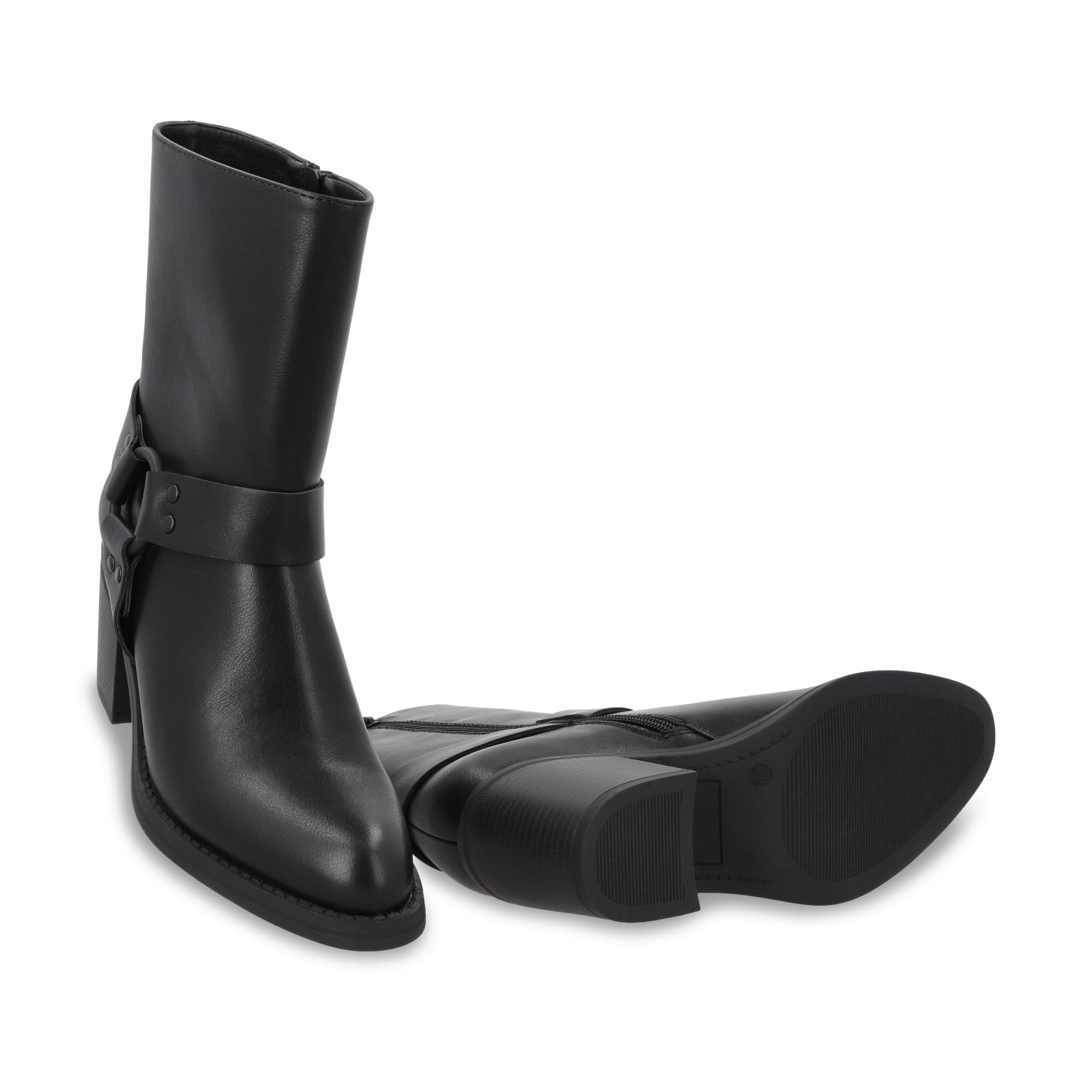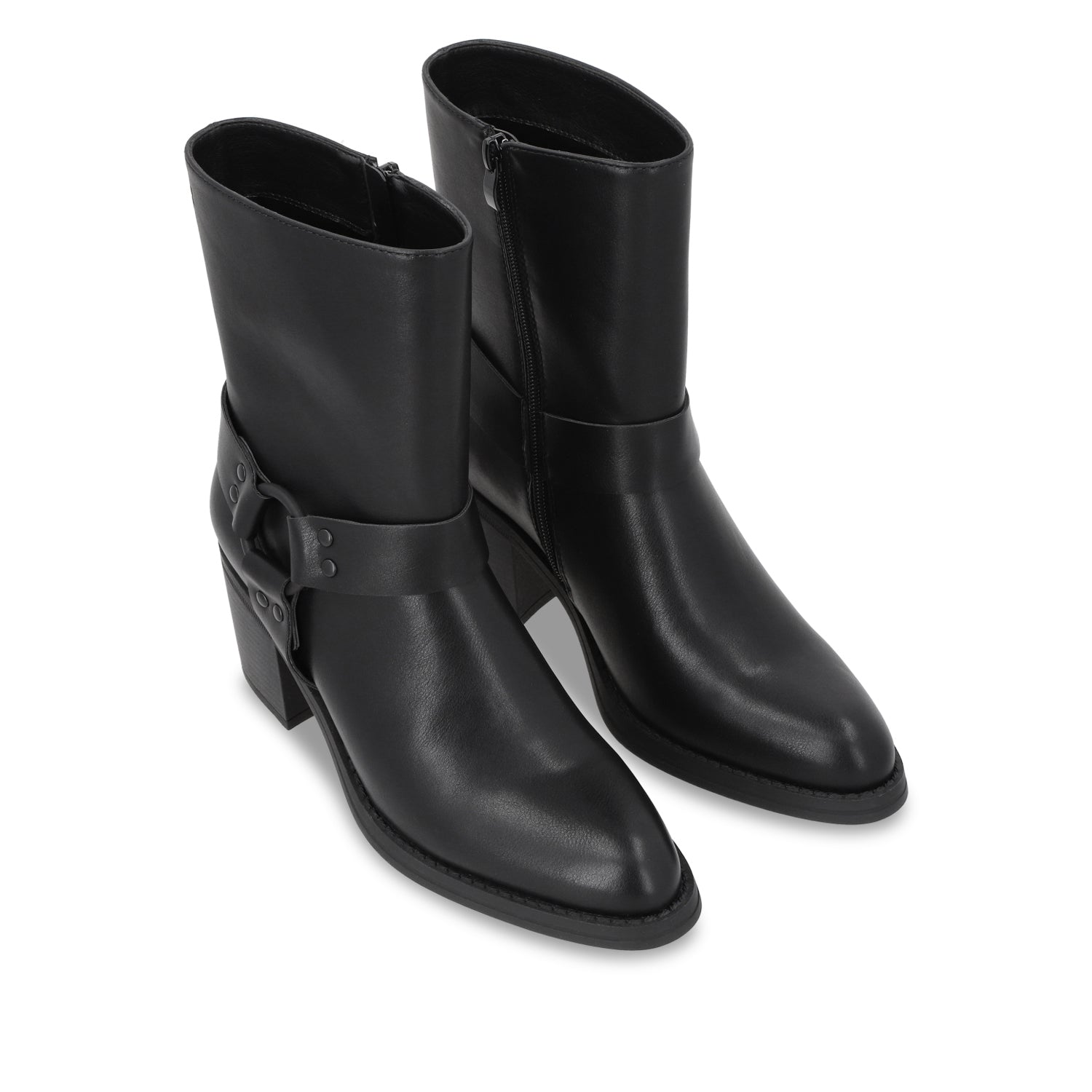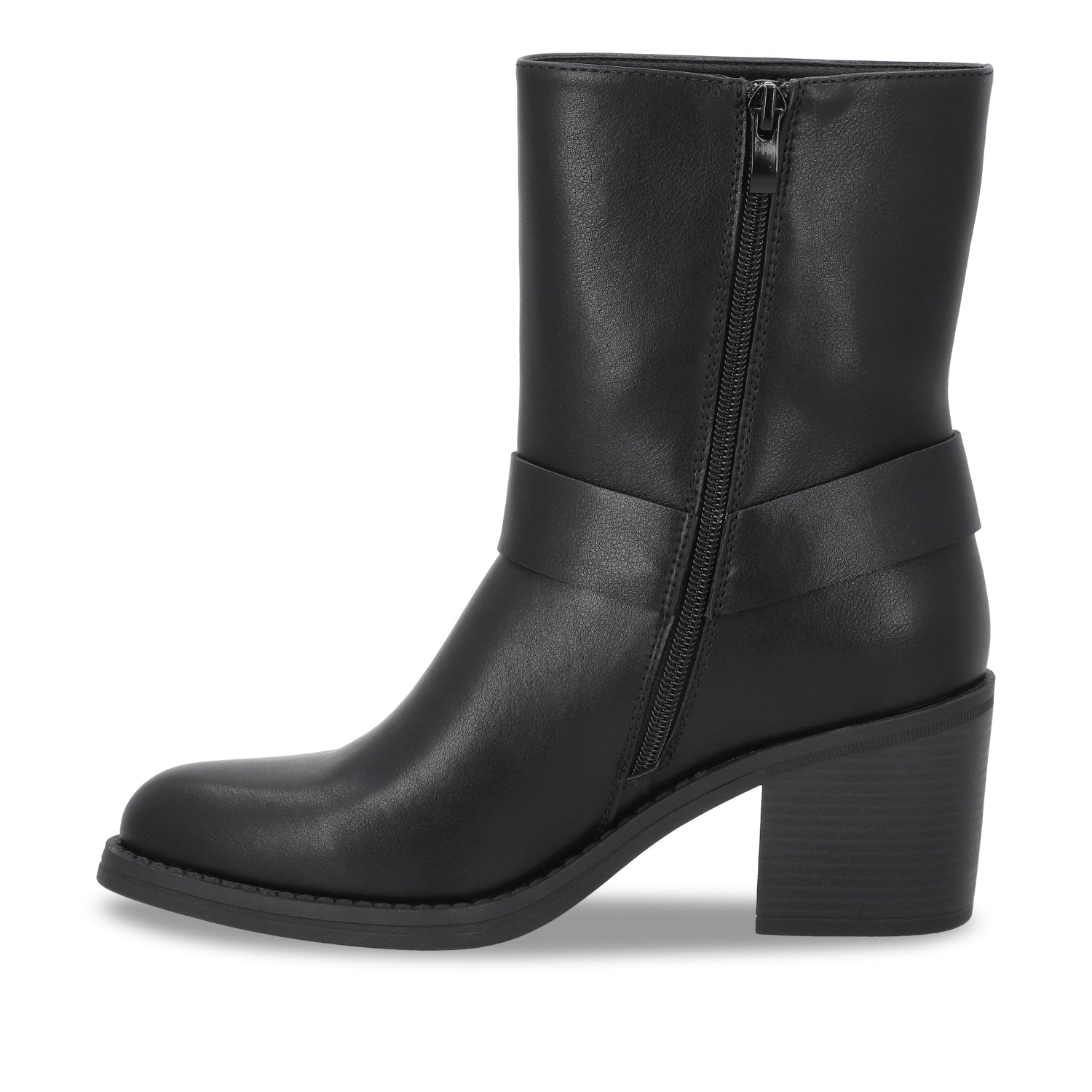 Este botín negro de apariencia cuero es el complemento ideal para un look moderno y sofisticado, perfecto para el día a día o para ocasiones más especiales. Su tacón medio proporciona estabilidad y comodidad, permitiéndote caminar con seguridad sin sacrificar estilo, mientras que su punta redonda le da un toque atemporal y versátil.