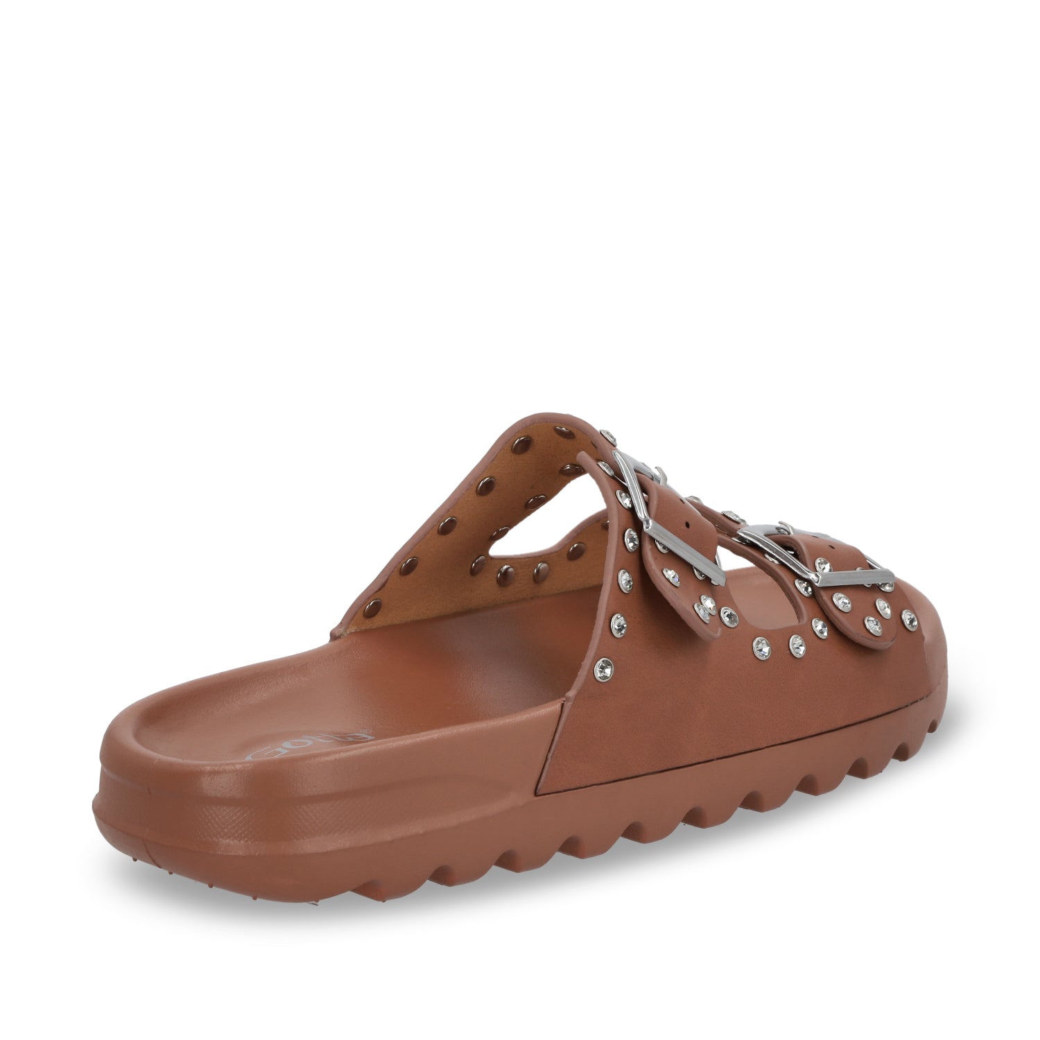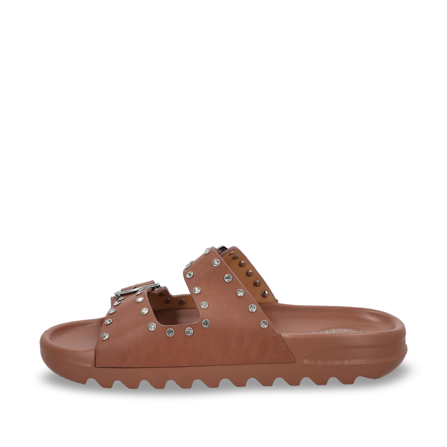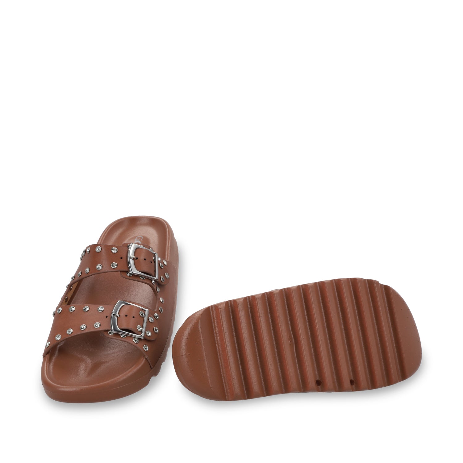 Elegancia y simplicidad en una sandalia plana color café. Perfectas para un look casual y desenfadado. El complemento ideal para tus atuendos de temporada.