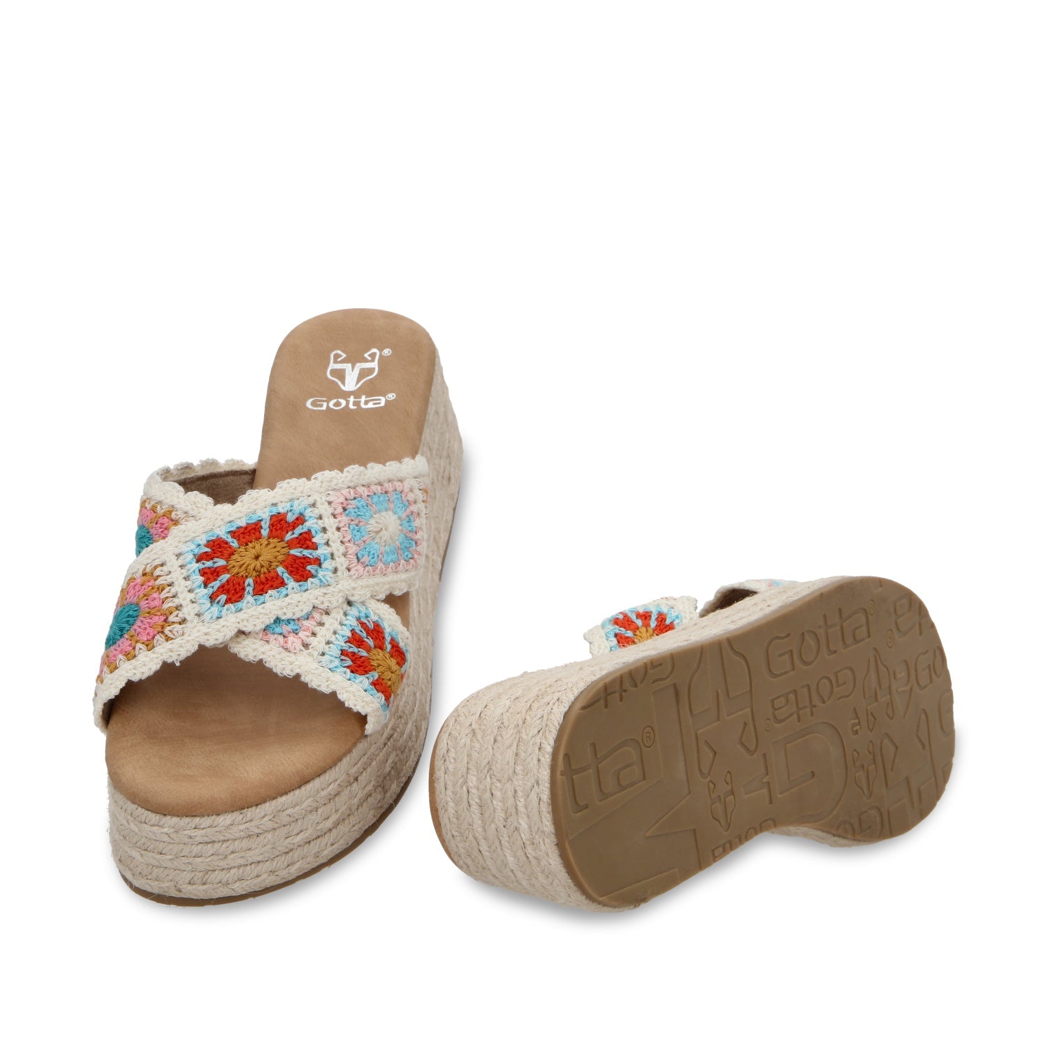 ¡Dale un toque divertido y trendy a tus looks con estas sandalias multicolor de plataforma! Su diseño en yute y detalles en crochet las hacen perfectas. Son cómodas, coloridas y están listas para agregar un toque de alegría a tu clóset. ¡Añádelas al carrito y disfruta de cada paso!