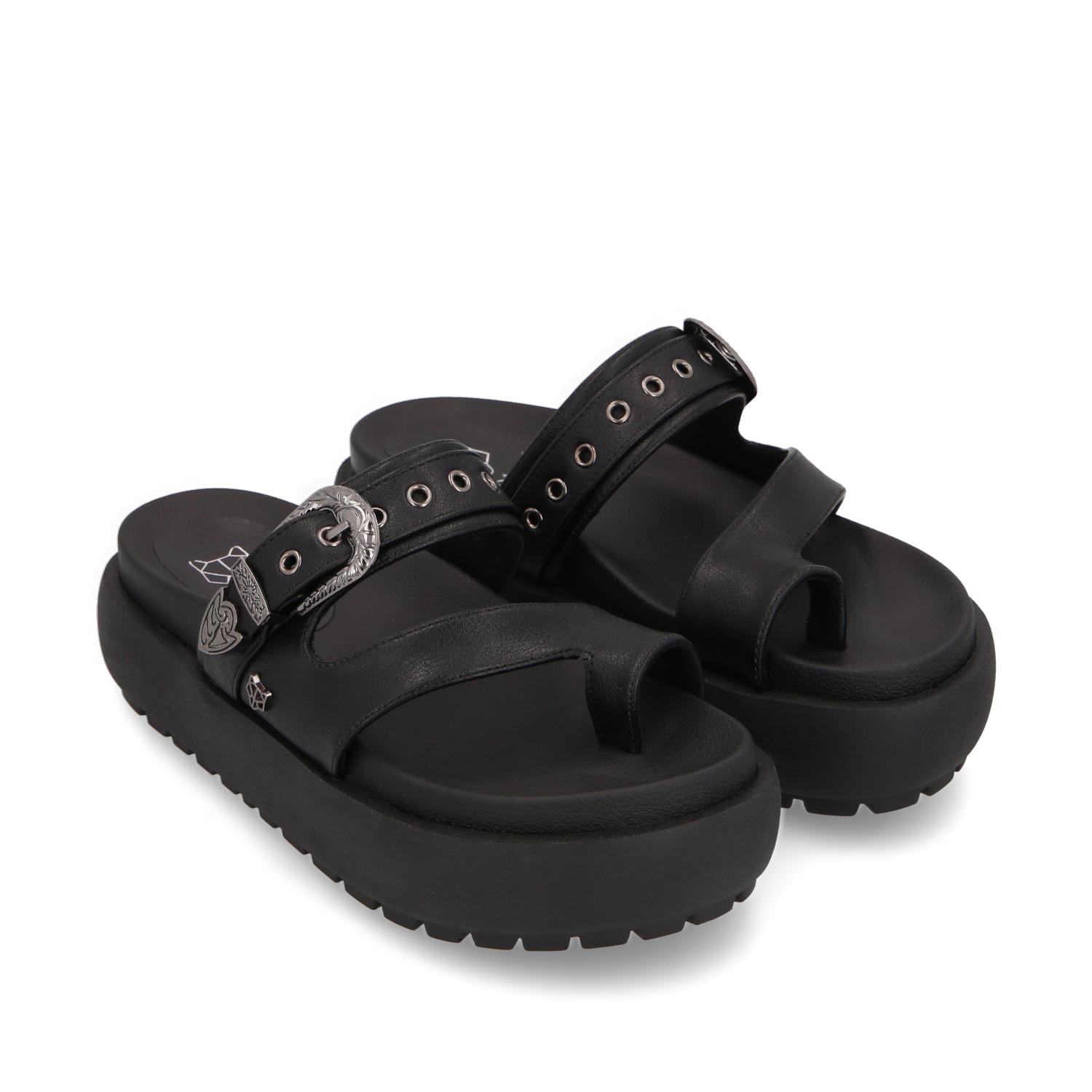 Sandalia Plataforma Negra Mujer 35193