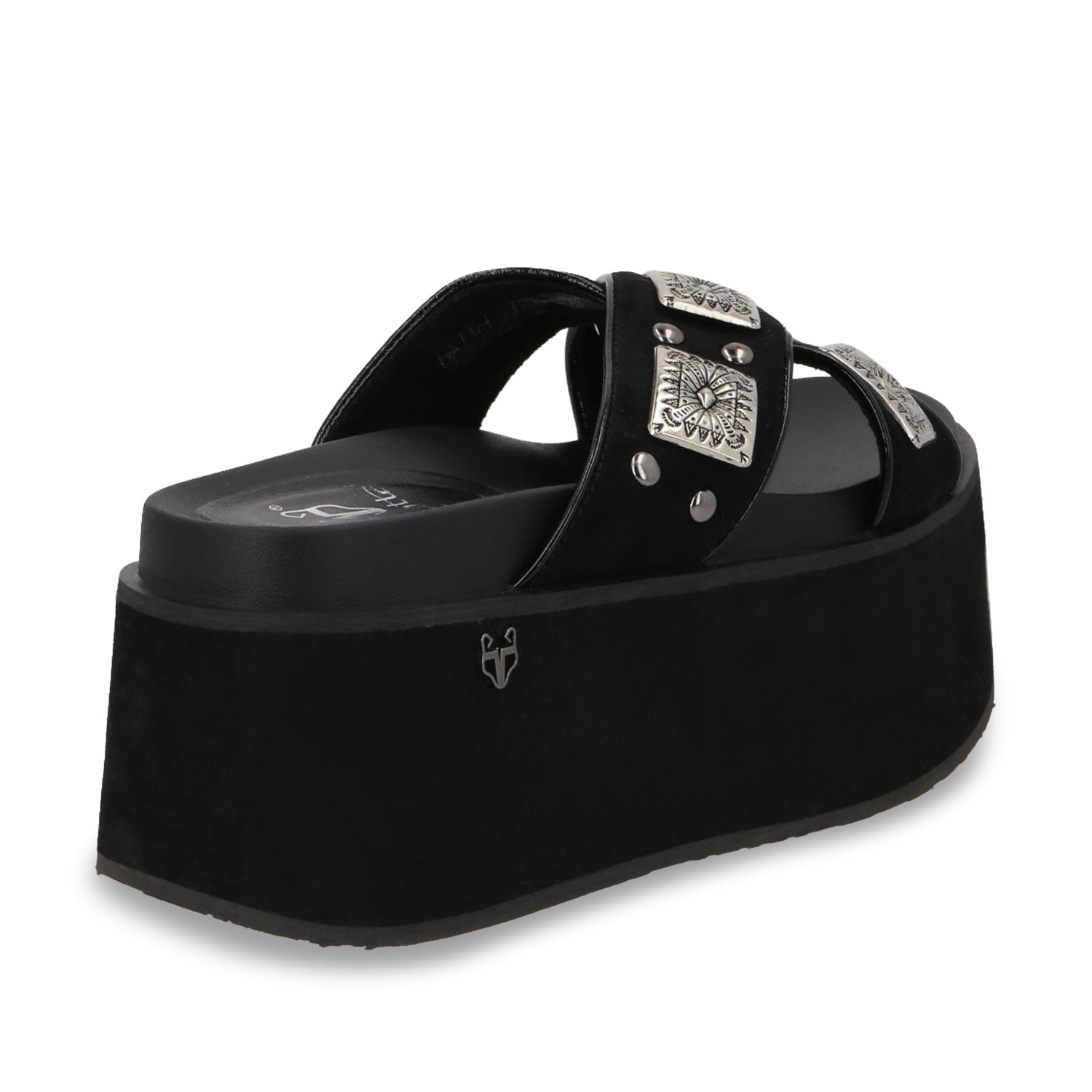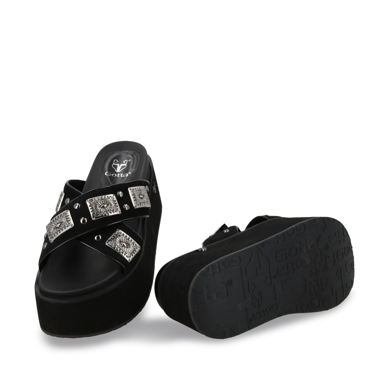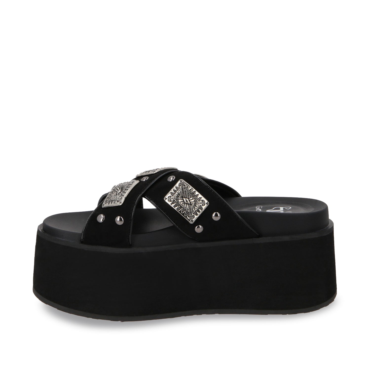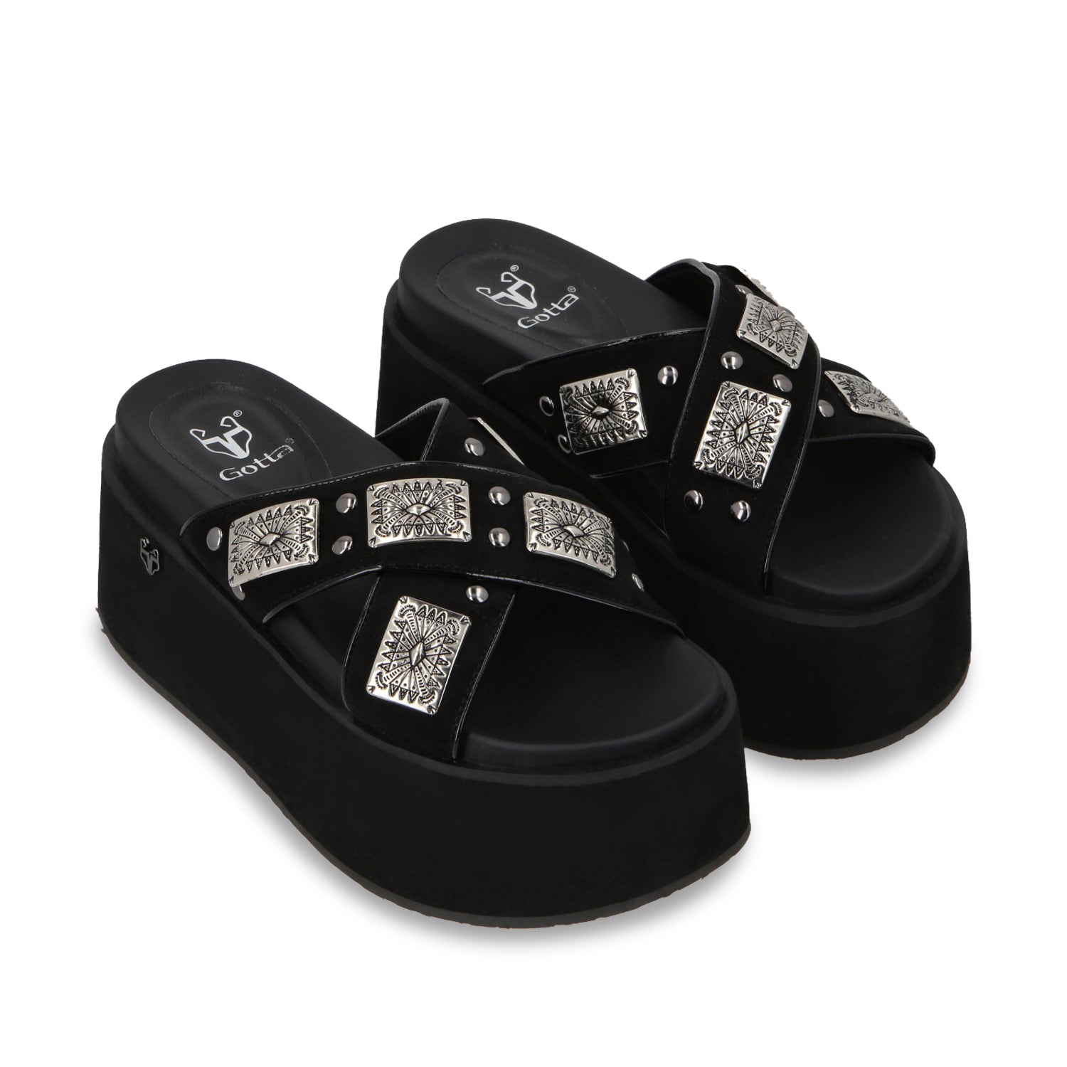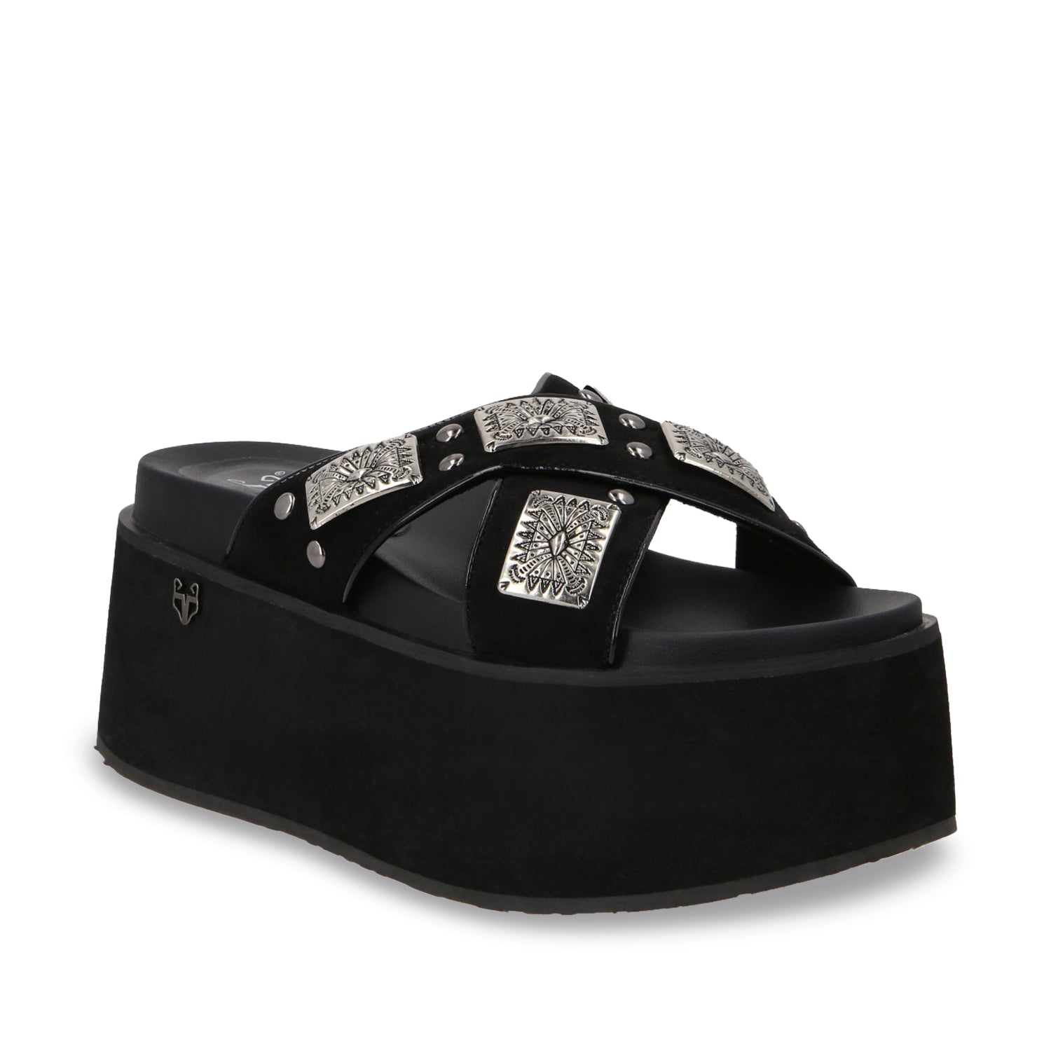 Para las que aman el estilo chunky. Estas sandalias de plataforma en negro son el complemento perfecto para elevar tus looks diarios. Su diseño en tendencia garantiza un ajuste cómodo y un look moderno, ideal para quienes siguen las últimas tendencias del fashion. ¡Añade un toque de moda a tu colección!