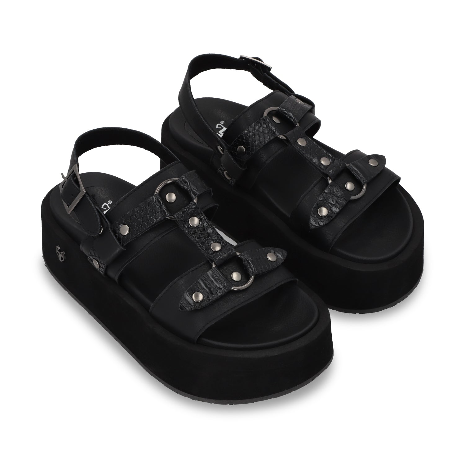 Estas sandalias de plataforma en negro son el toque ideal para quienes aman el estilo contemporáneo. Con un diseño minimalista y detalles en cuero, son ideales para looks casuales que se mantienen en tendencia. ¡Añade un toque de elegancia a tus días!