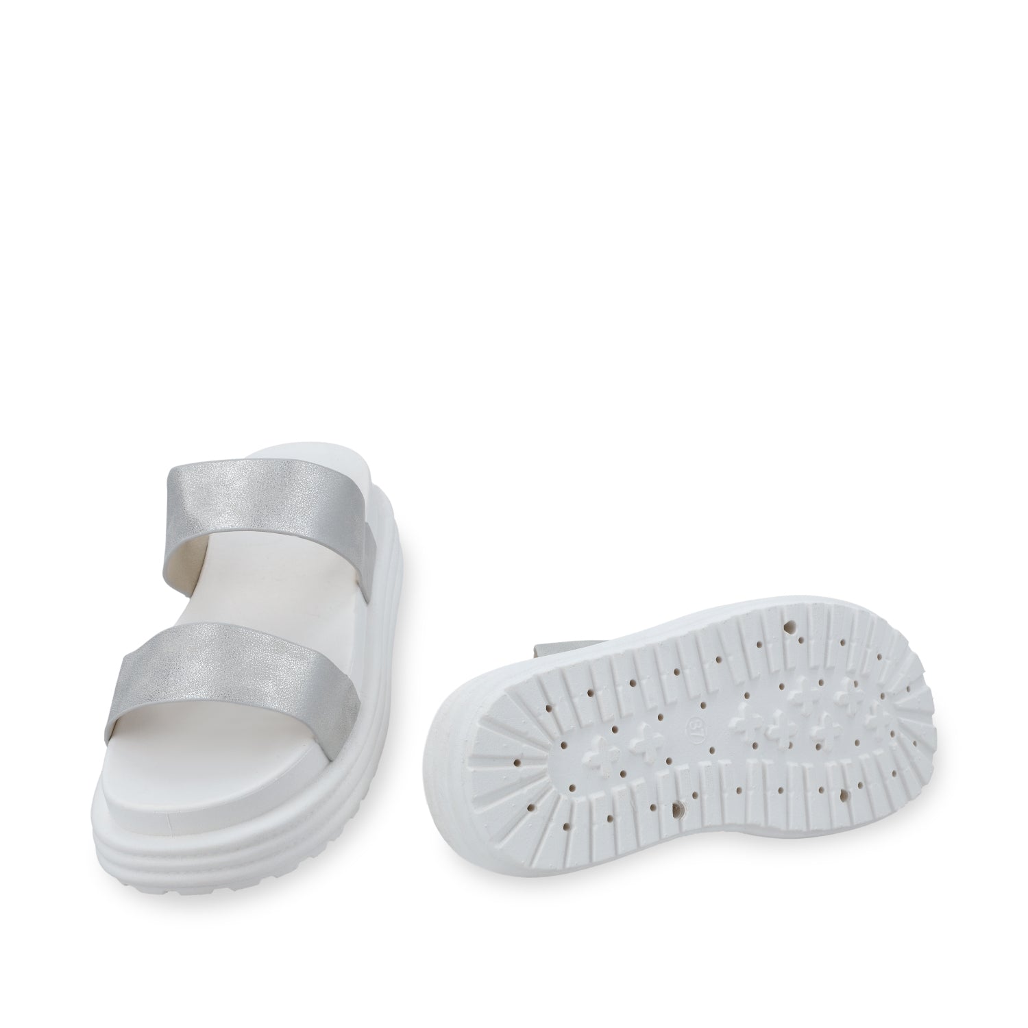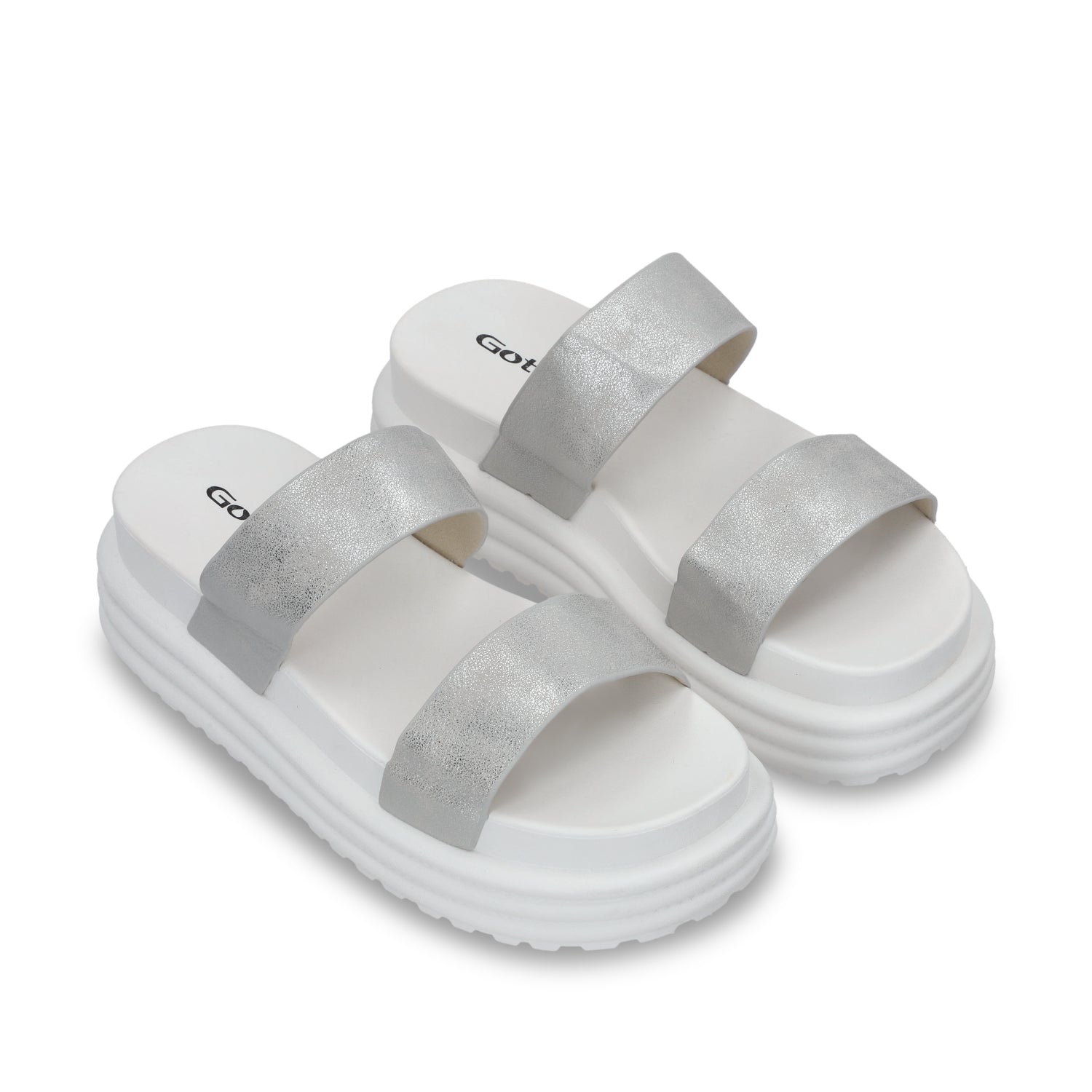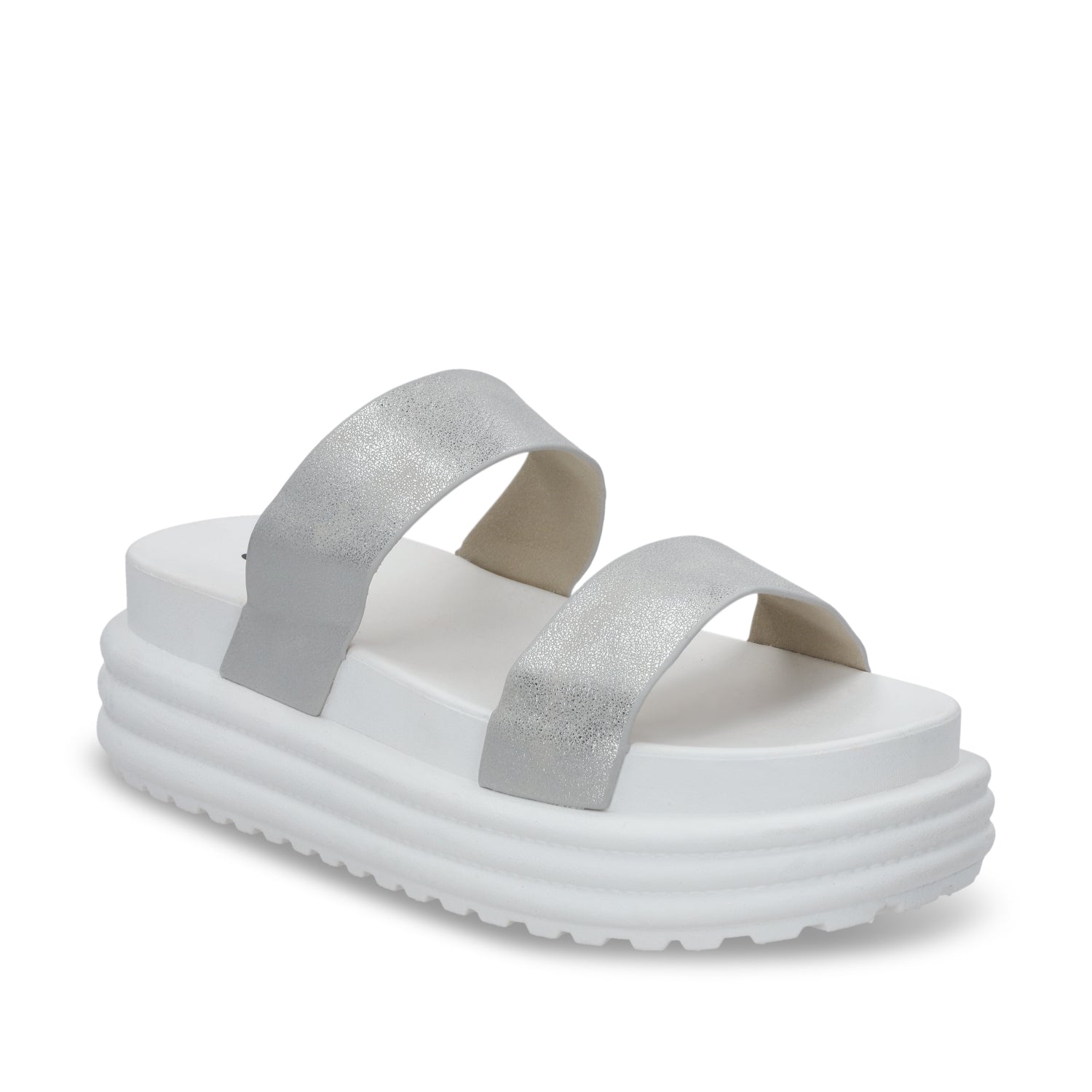 Con un acabado plateado y una plataforma cómoda, estas sandalias son el complemento ideal para tus outfits veraniegos. El diseño flatform añade altura sin sacrificar la comodidad, mientras que el brillo metálico aporta un toque glam a tus días más casuales.