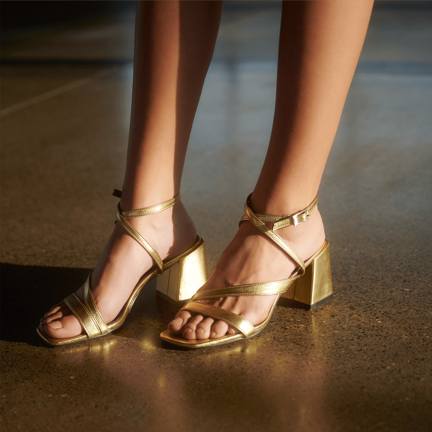 ¡Oro en cada paso! Estas sandalias doradas con taco cuadrado son perfectas para brillar en cualquier evento. Su diseño de cuero aporta un aire sofisticado y festivo, ideal para noches glamorosas. Con un taco que estiliza sin sacrificar comodidad, estas sandalias serán tus mejores aliadas para deslumbrar sin esfuerzo. ¡Atrévete a brillar con estilo!